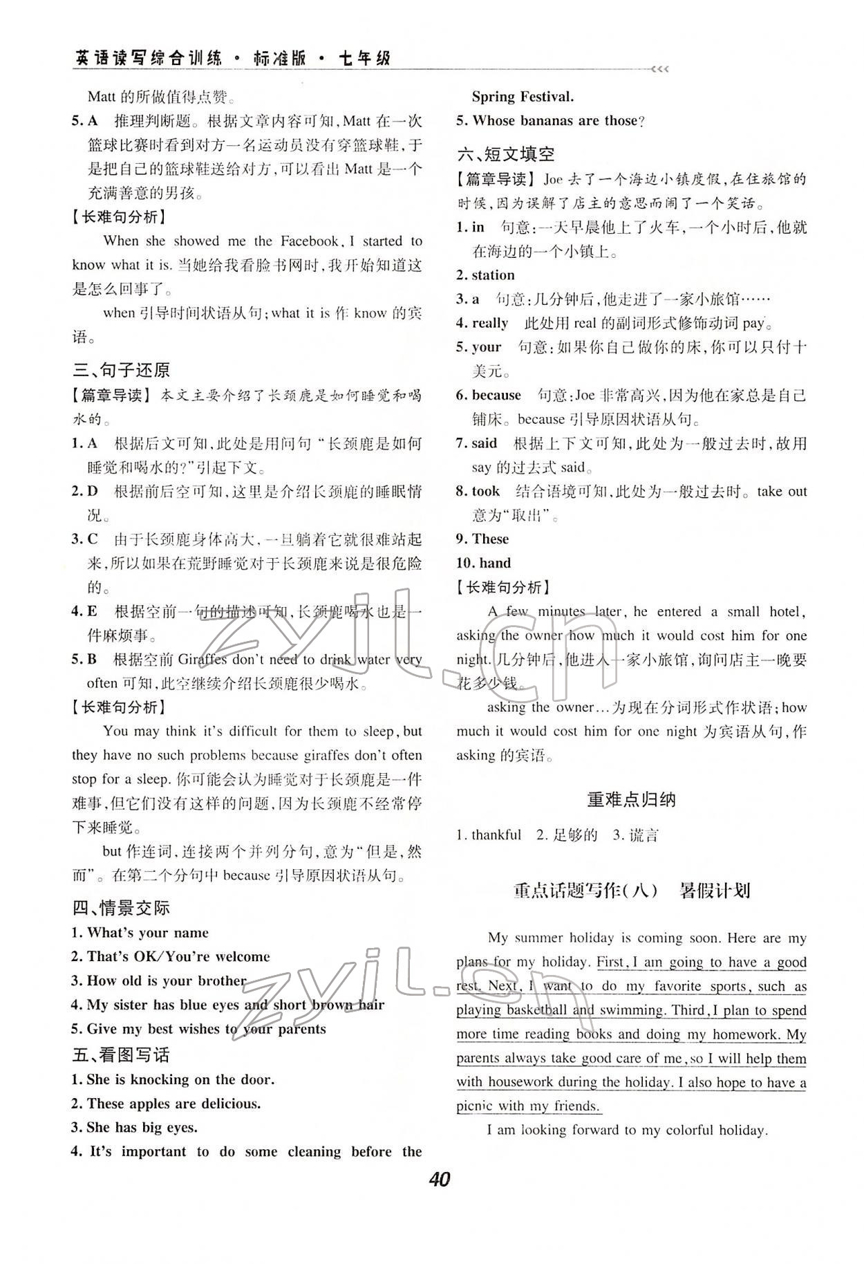 注:目前有些书本章节名称可能整理的还不是很完善,但都是按照顺序排列的,请同学们按照顺序仔细查找。练习册 2022年激情英语读写组合训练七年级人教版 答案主要是用来给同学们做完题方便对答案用的,请勿直接抄袭。
