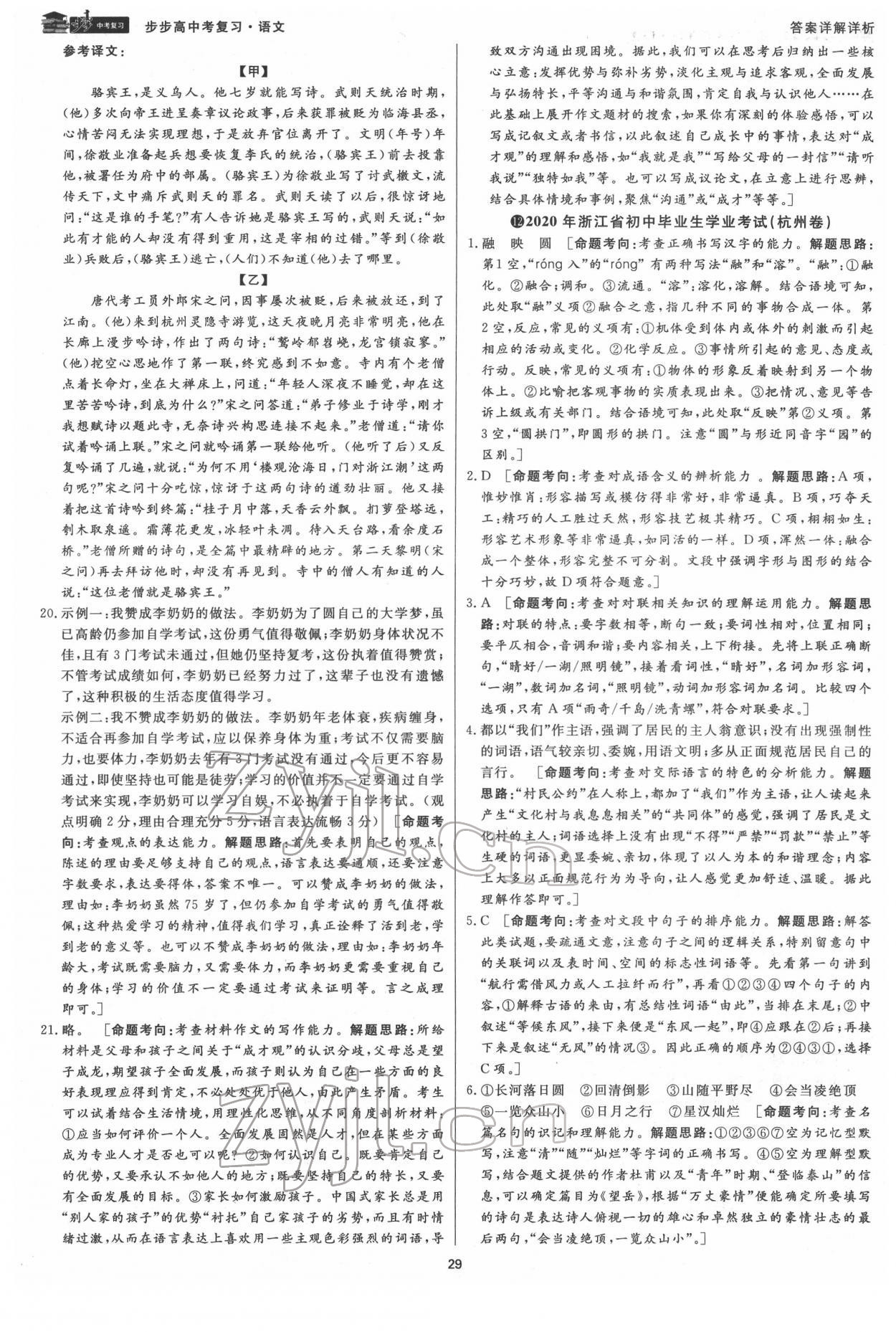 注:目前有些书本章节名称可能整理的还不是很完善,但都是按照顺序排列的,请同学们按照顺序仔细查找。练习册 2022年步步高中考复习语文台州专版 答案主要是用来给同学们做完题方便对答案用的,请勿直接抄袭。