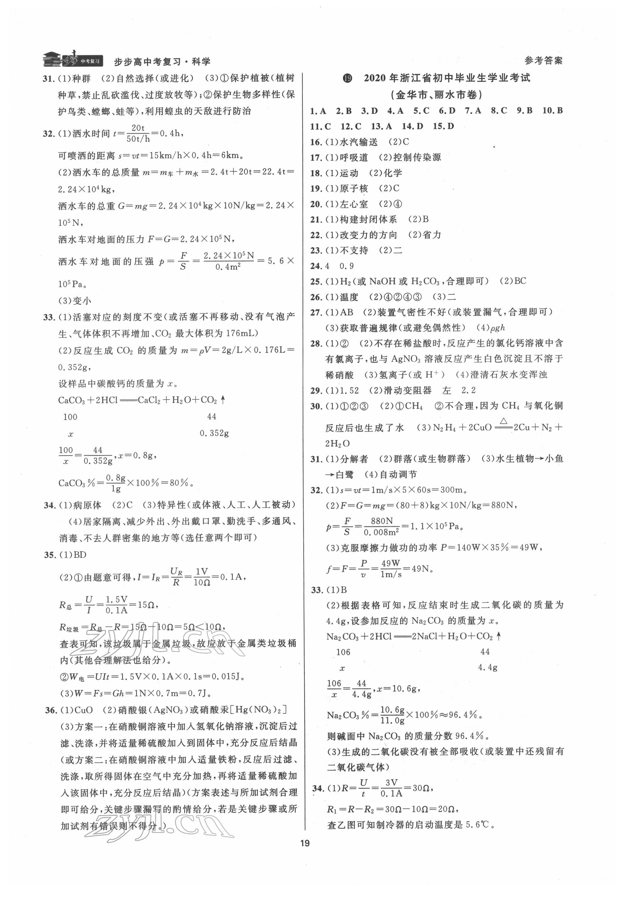 注:目前有些书本章节名称可能整理的还不是很完善,但都是按照顺序排列的,请同学们按照顺序仔细查找。练习册 2022年步步高中考复习科学台州专版 答案主要是用来给同学们做完题方便对答案用的,请勿直接抄袭。