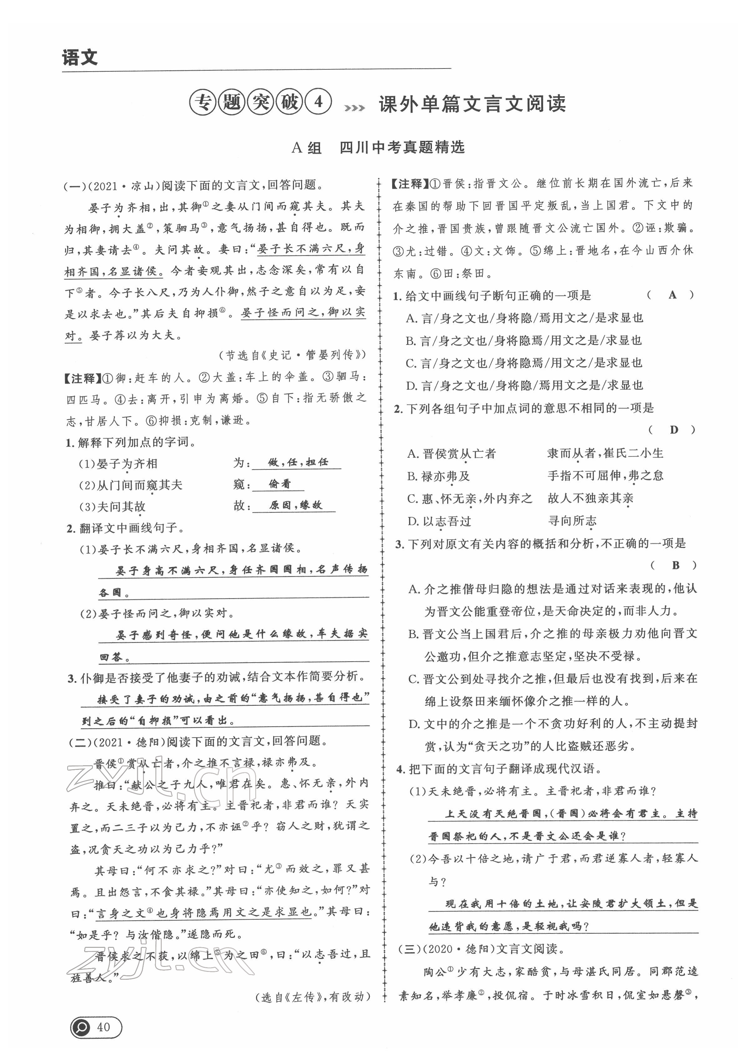 注:目前有些书本章节名称可能整理的还不是很完善,但都是按照顺序排列的,请同学们按照顺序仔细查找。练习册 2022年中考全接触中考试题突破语文四川专版 答案主要是用来给同学们做完题方便对答案用的,请勿直接抄袭。