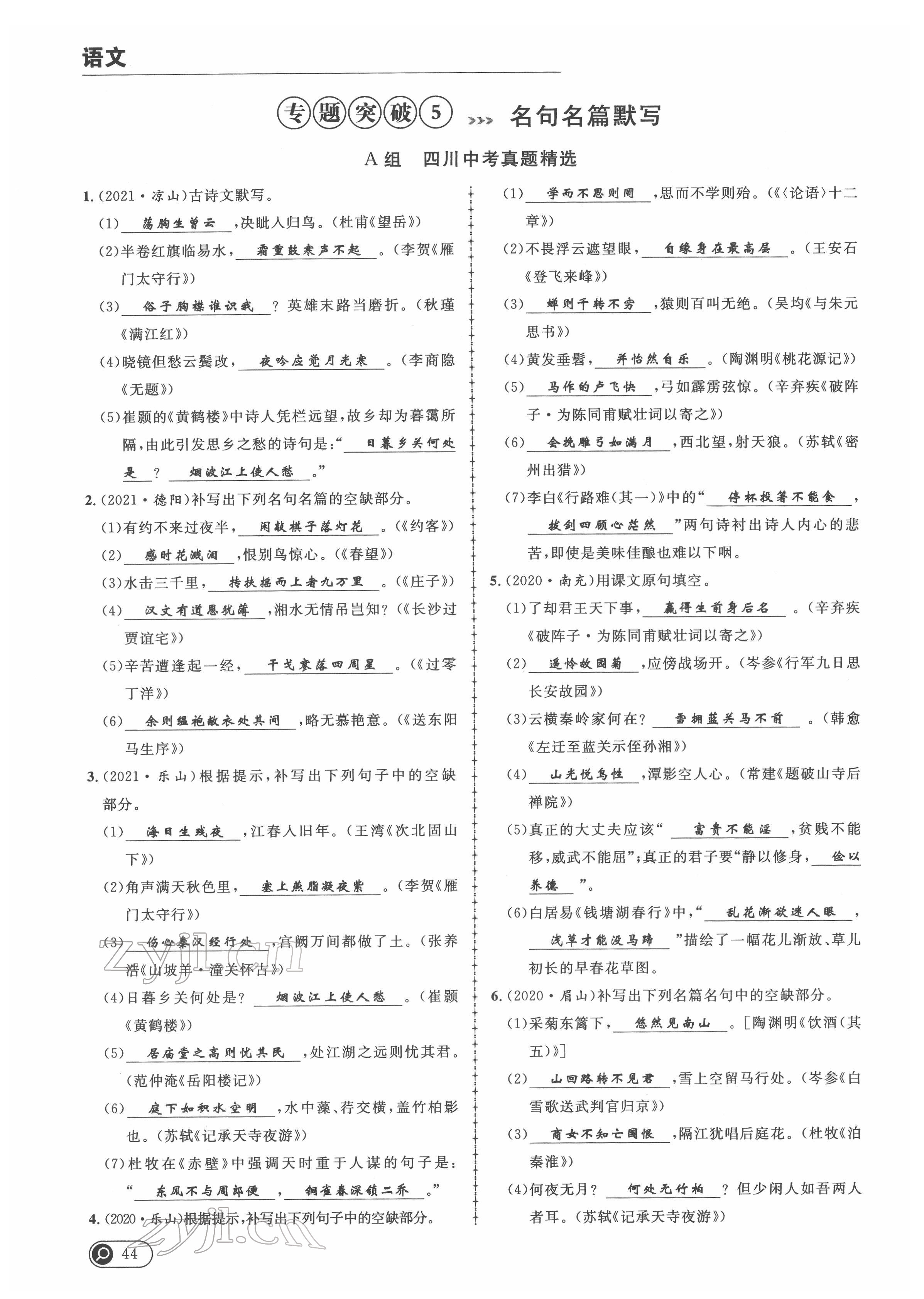 注:目前有些书本章节名称可能整理的还不是很完善,但都是按照顺序排列的,请同学们按照顺序仔细查找。练习册 2022年中考全接触中考试题突破语文四川专版 答案主要是用来给同学们做完题方便对答案用的,请勿直接抄袭。