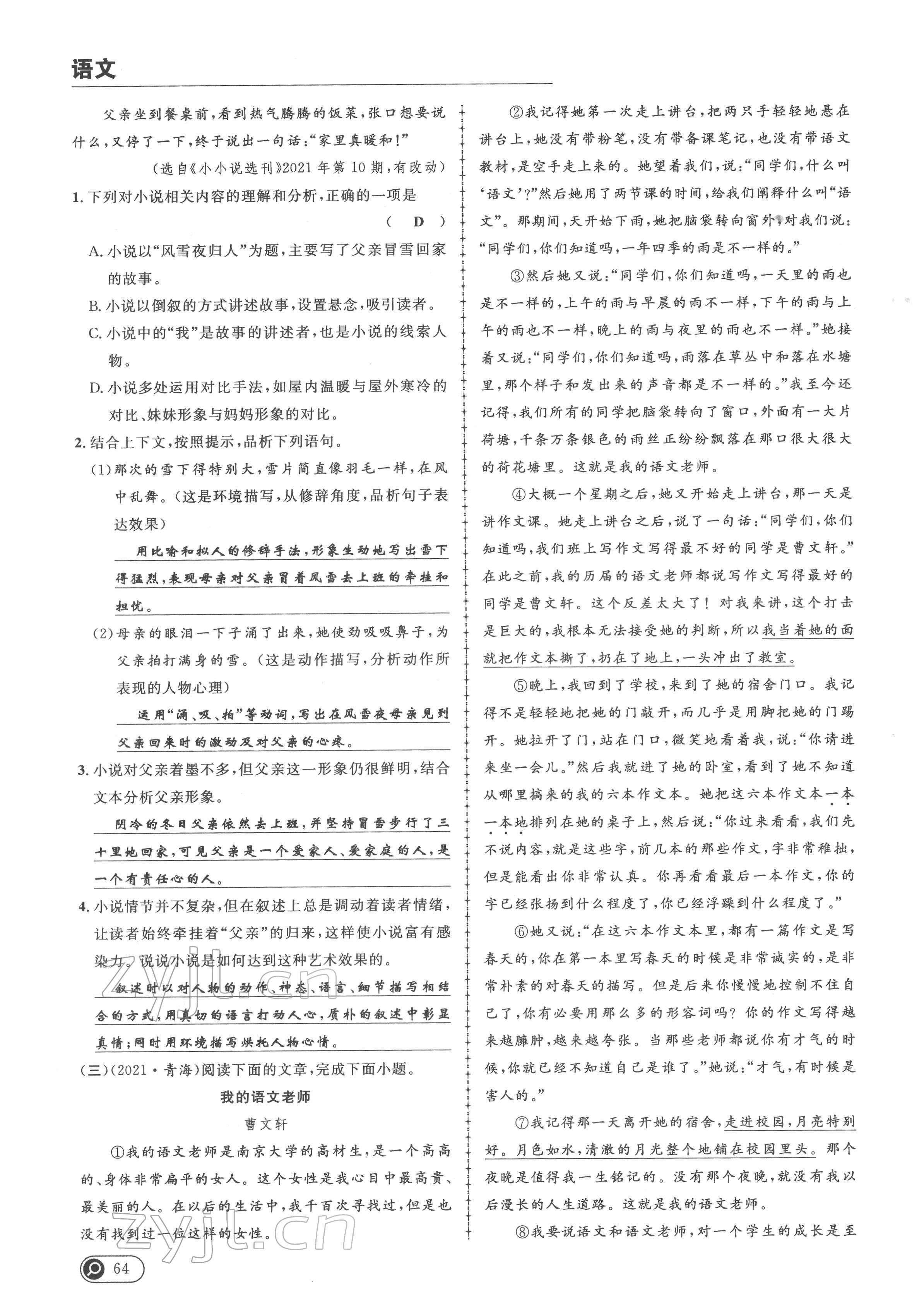 注:目前有些书本章节名称可能整理的还不是很完善,但都是按照顺序排列的,请同学们按照顺序仔细查找。练习册 2022年中考全接触中考试题突破语文四川专版 答案主要是用来给同学们做完题方便对答案用的,请勿直接抄袭。