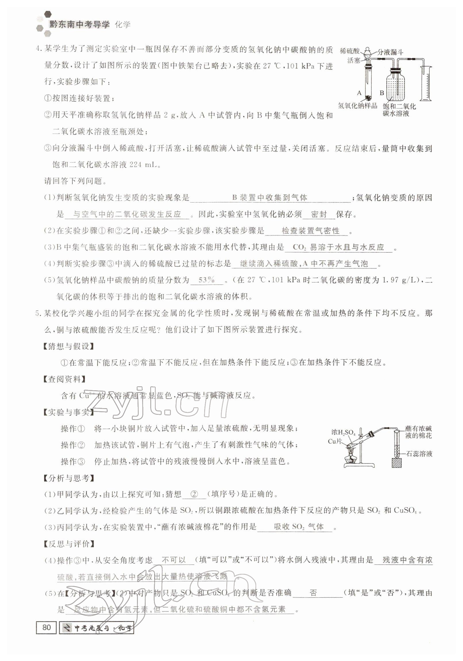 注:目前有些书本章节名称可能整理的还不是很完善,但都是按照顺序排列的,请同学们按照顺序仔细查找。练习册 2022年黔东南中考导学化学 答案主要是用来给同学们做完题方便对答案用的,请勿直接抄袭。