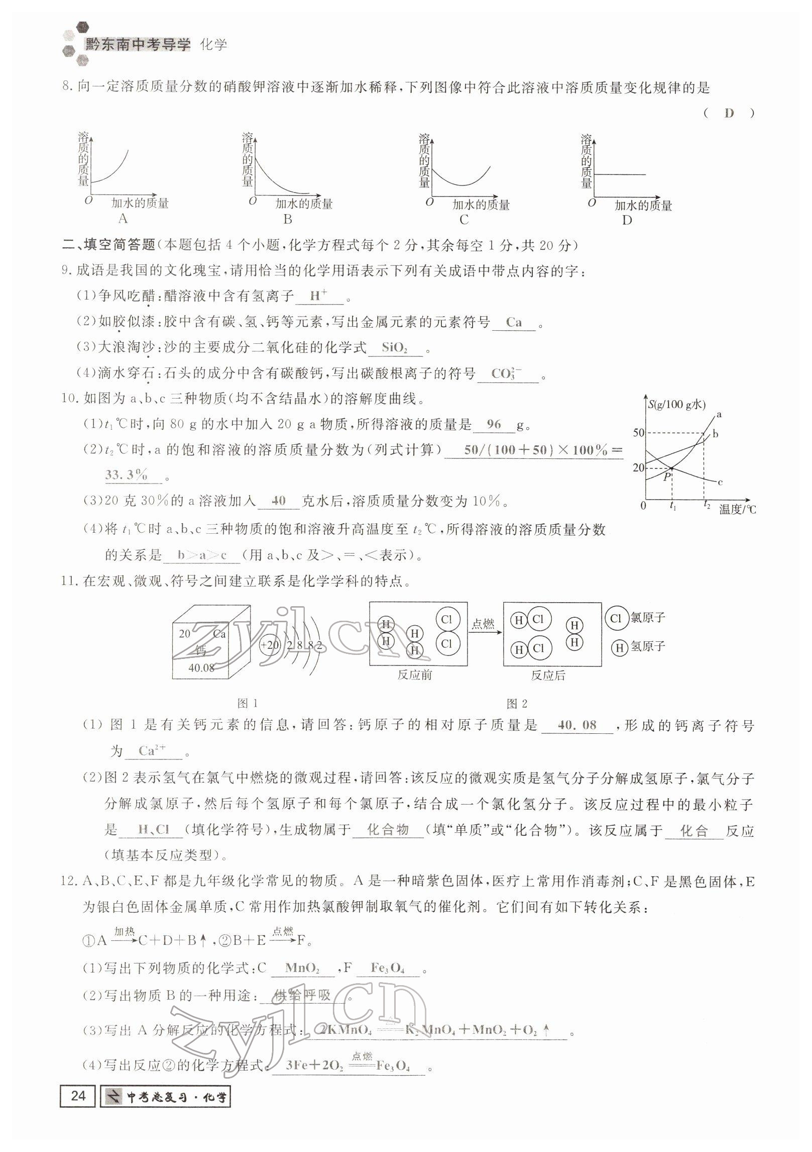 注:目前有些书本章节名称可能整理的还不是很完善,但都是按照顺序排列的,请同学们按照顺序仔细查找。练习册 2022年黔东南中考导学化学 答案主要是用来给同学们做完题方便对答案用的,请勿直接抄袭。