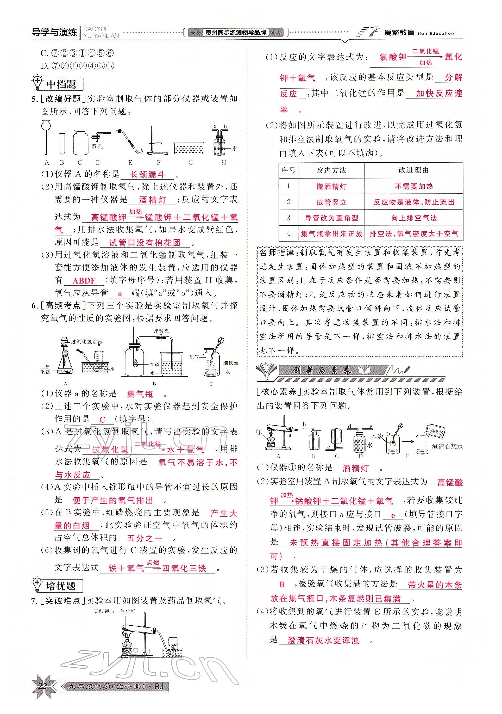 注:目前有些书本章节名称可能整理的还不是很完善,但都是按照顺序排列的,请同学们按照顺序仔细查找。练习册 2022年导学与演练九年级化学全一册人教版贵阳专版 答案主要是用来给同学们做完题方便对答案用的,请勿直接抄袭。