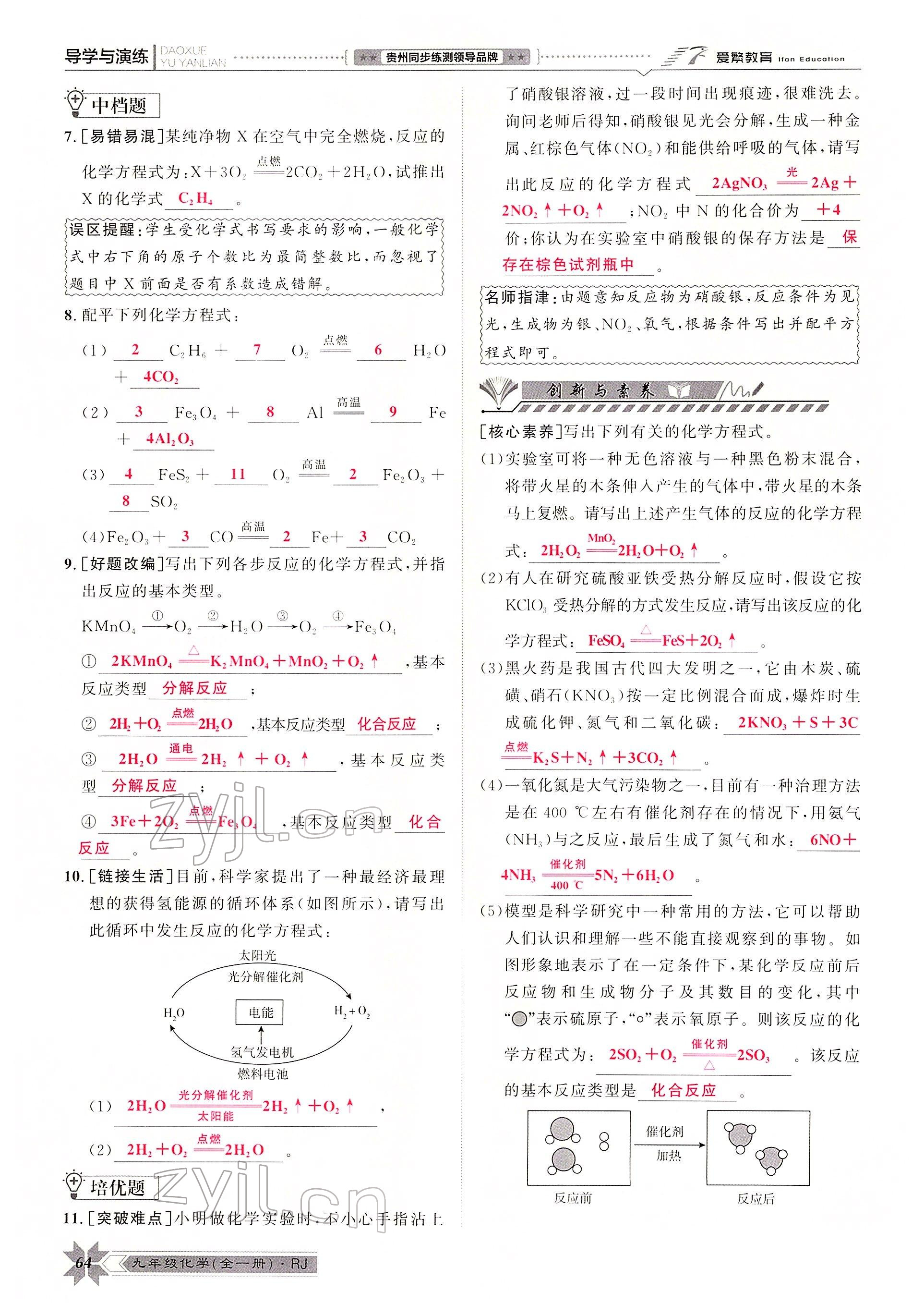 注:目前有些书本章节名称可能整理的还不是很完善,但都是按照顺序排列的,请同学们按照顺序仔细查找。练习册 2022年导学与演练九年级化学全一册人教版贵阳专版 答案主要是用来给同学们做完题方便对答案用的,请勿直接抄袭。