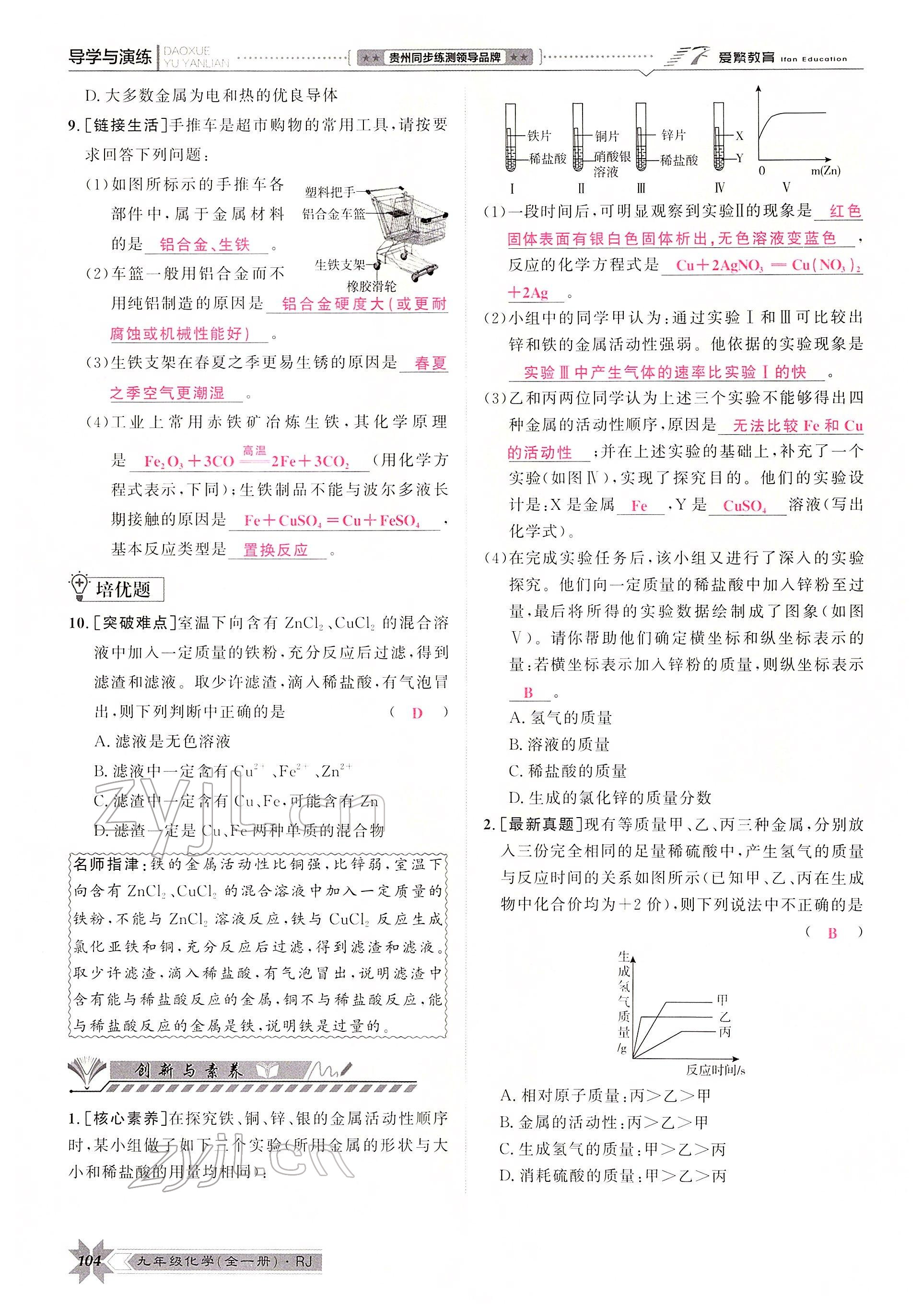 注:目前有些书本章节名称可能整理的还不是很完善,但都是按照顺序排列的,请同学们按照顺序仔细查找。练习册 2022年导学与演练九年级化学全一册人教版贵阳专版 答案主要是用来给同学们做完题方便对答案用的,请勿直接抄袭。