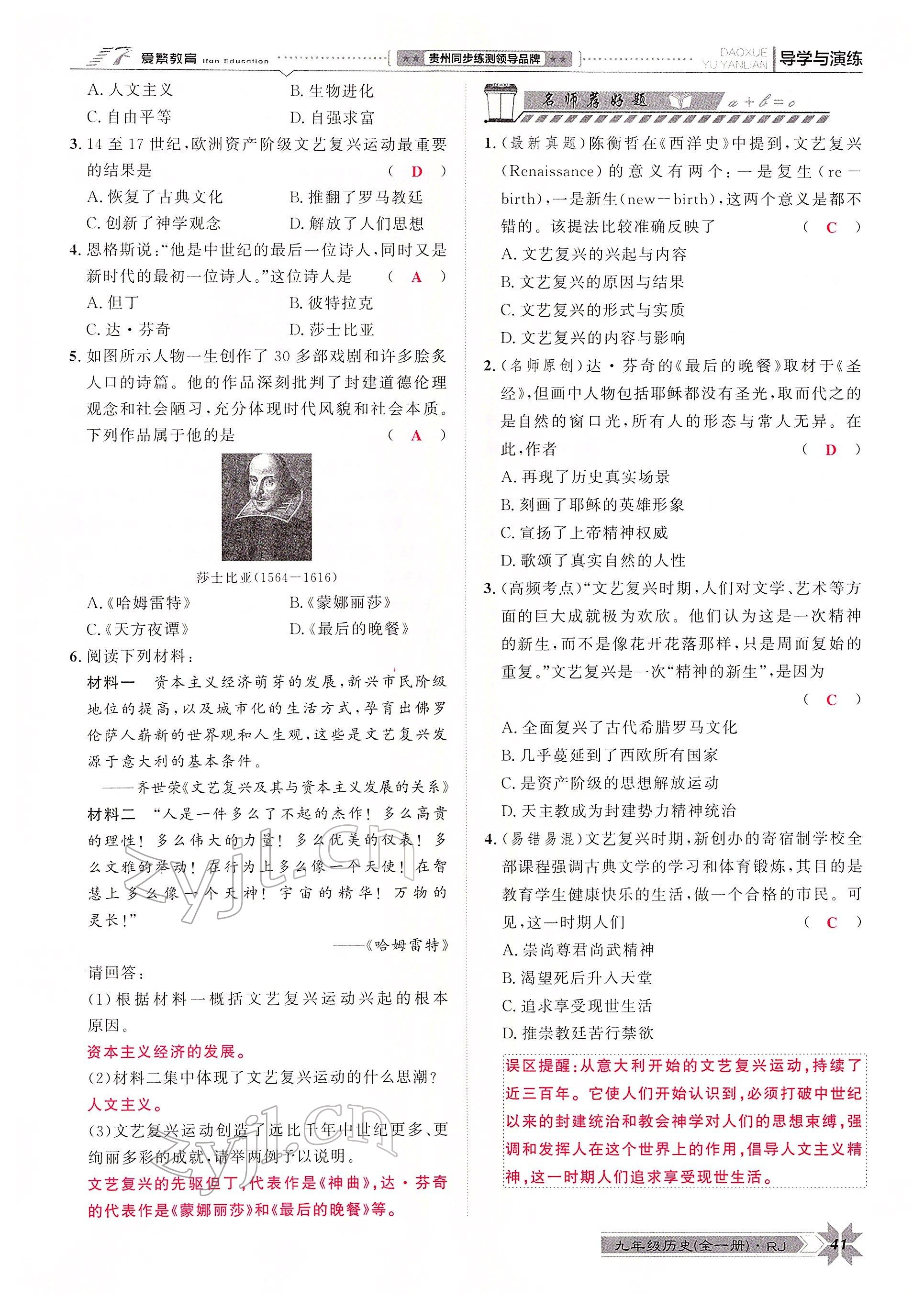 注:目前有些书本章节名称可能整理的还不是很完善,但都是按照顺序排列的,请同学们按照顺序仔细查找。练习册 2022年导学与演练九年级历史全一册人教版贵阳专版 答案主要是用来给同学们做完题方便对答案用的,请勿直接抄袭。