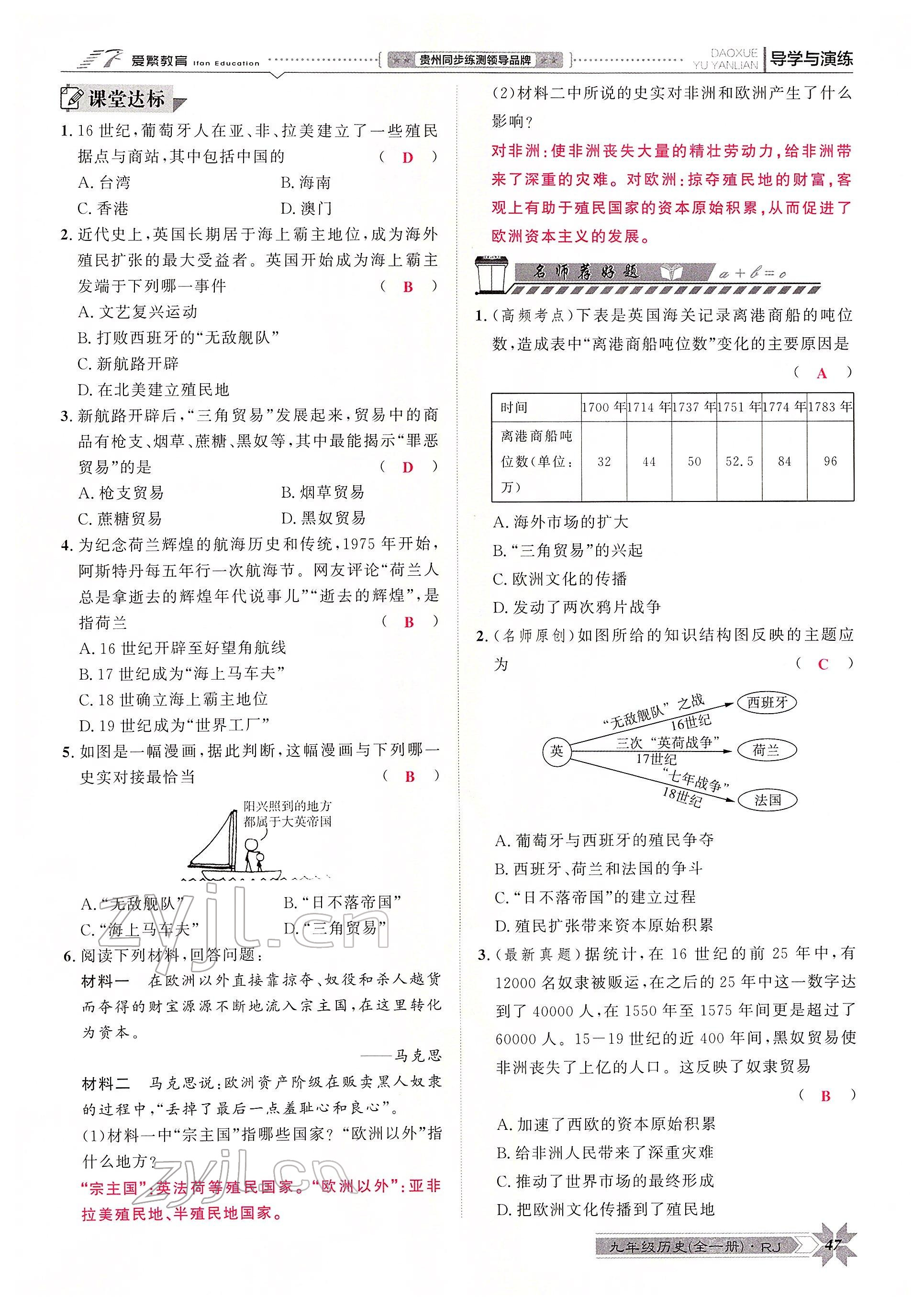 注:目前有些书本章节名称可能整理的还不是很完善,但都是按照顺序排列的,请同学们按照顺序仔细查找。练习册 2022年导学与演练九年级历史全一册人教版贵阳专版 答案主要是用来给同学们做完题方便对答案用的,请勿直接抄袭。