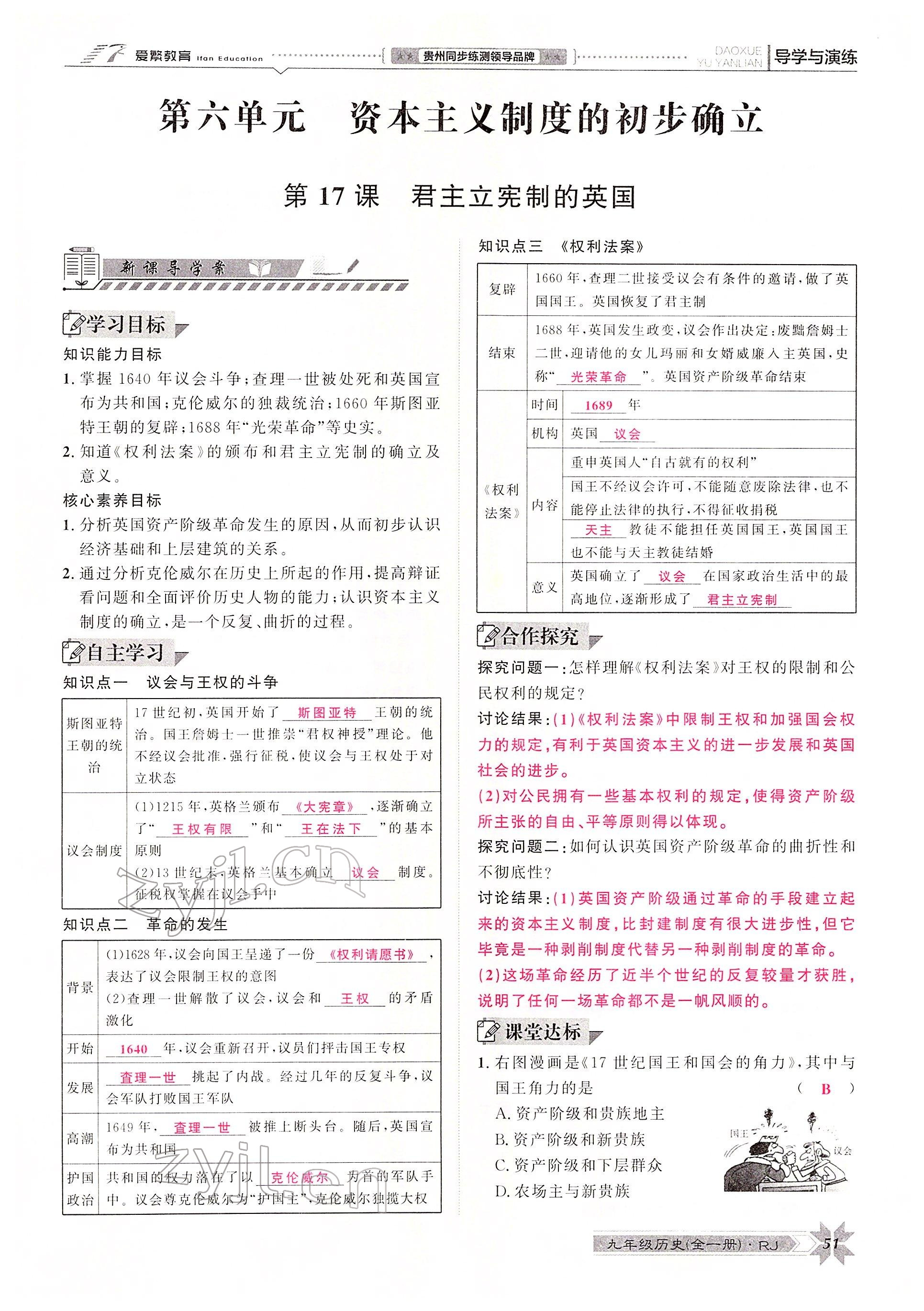2022年导学与演练九年级历史全一册人教版贵阳专版
