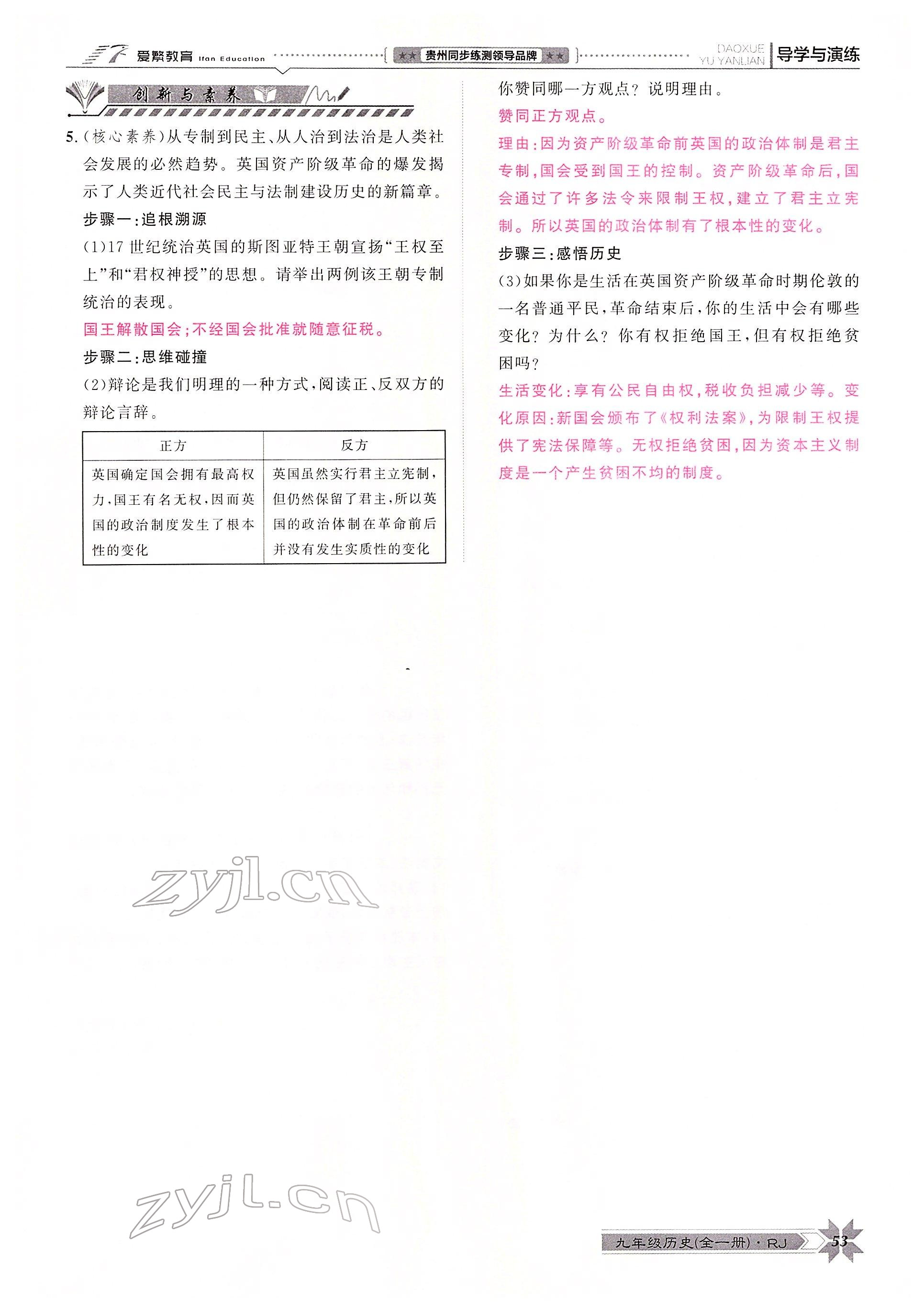 注:目前有些书本章节名称可能整理的还不是很完善,但都是按照顺序排列的,请同学们按照顺序仔细查找。练习册 2022年导学与演练九年级历史全一册人教版贵阳专版 答案主要是用来给同学们做完题方便对答案用的,请勿直接抄袭。