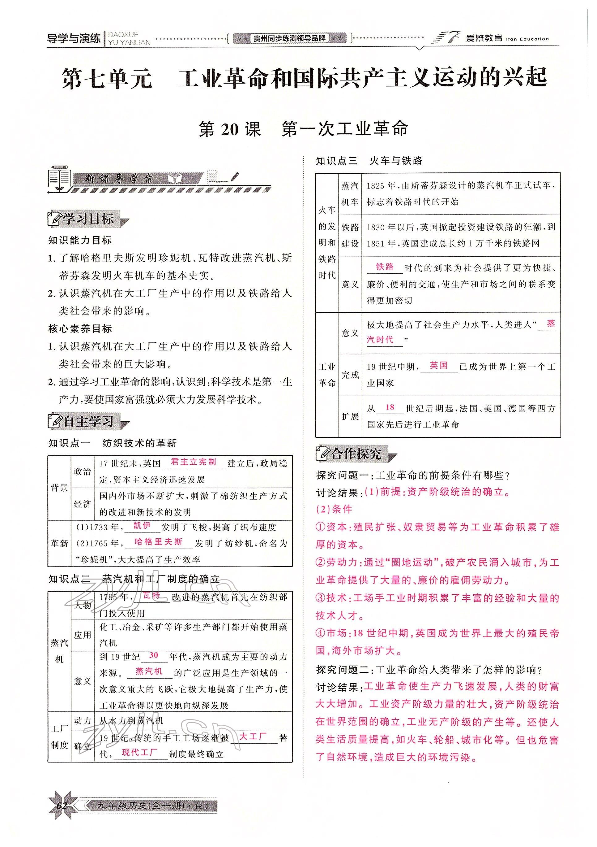 2022年导学与演练九年级历史全一册人教版贵阳专版