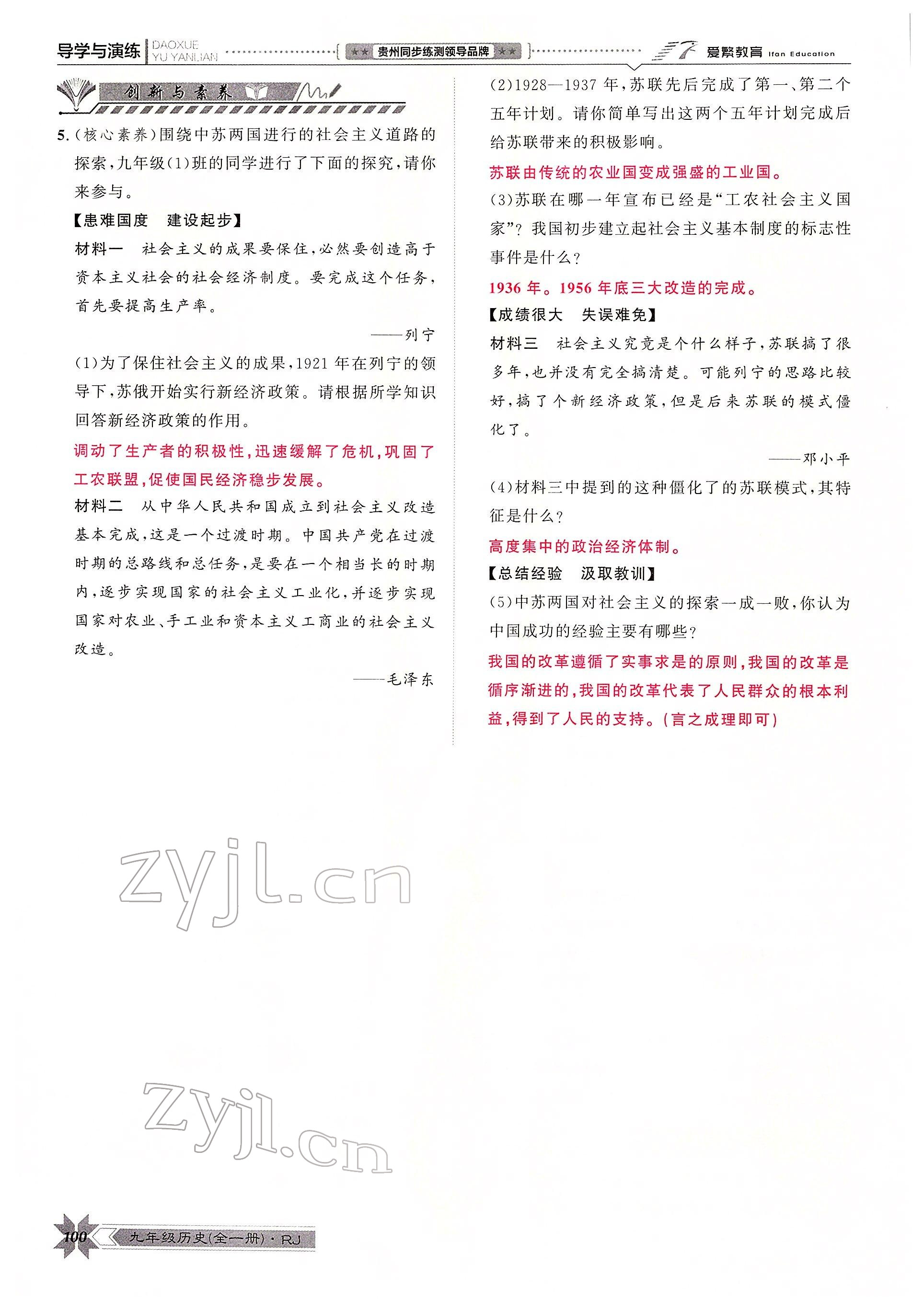 注:目前有些书本章节名称可能整理的还不是很完善,但都是按照顺序排列的,请同学们按照顺序仔细查找。练习册 2022年导学与演练九年级历史全一册人教版贵阳专版 答案主要是用来给同学们做完题方便对答案用的,请勿直接抄袭。