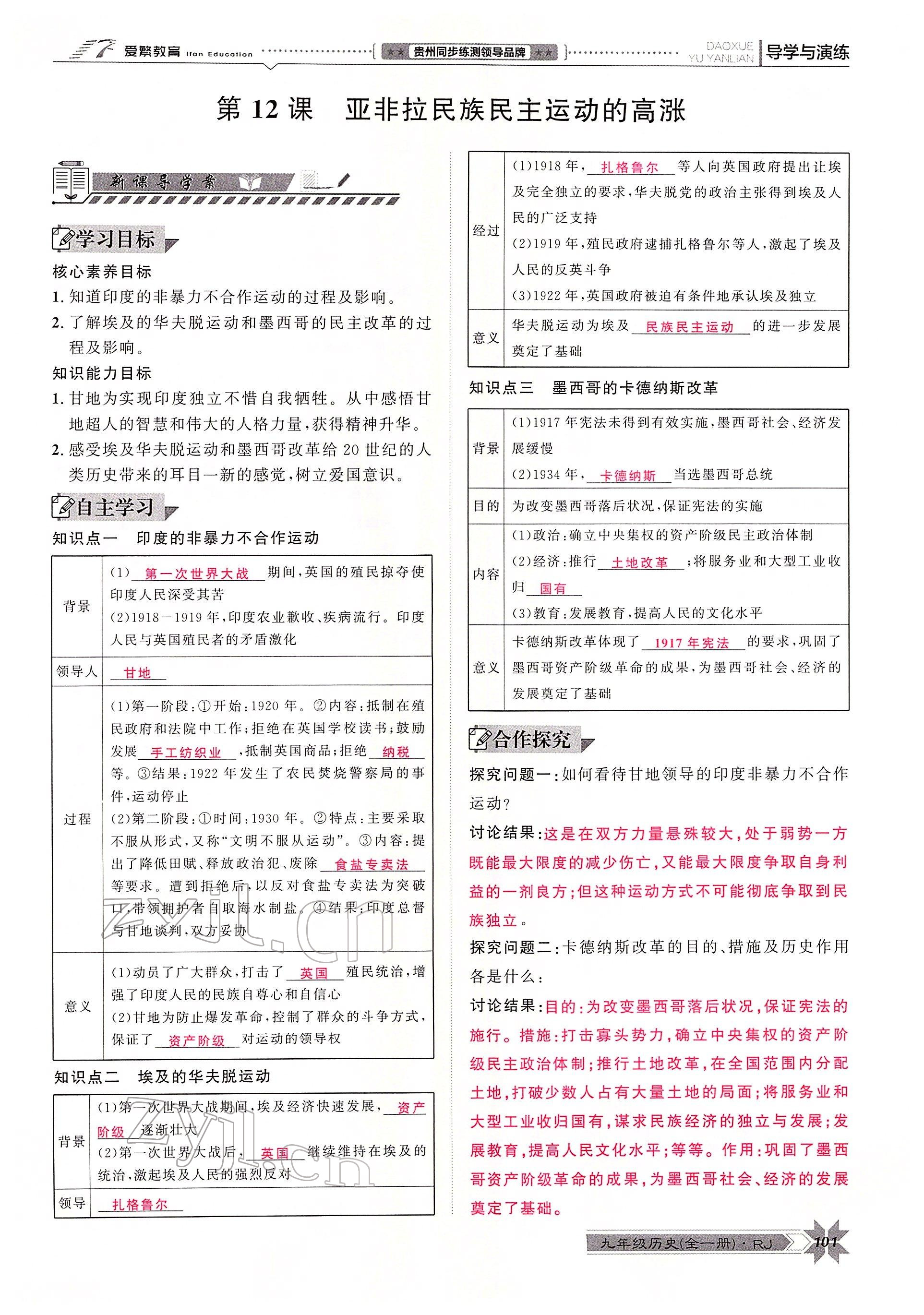 2022年导学与演练九年级历史全一册人教版贵阳专版