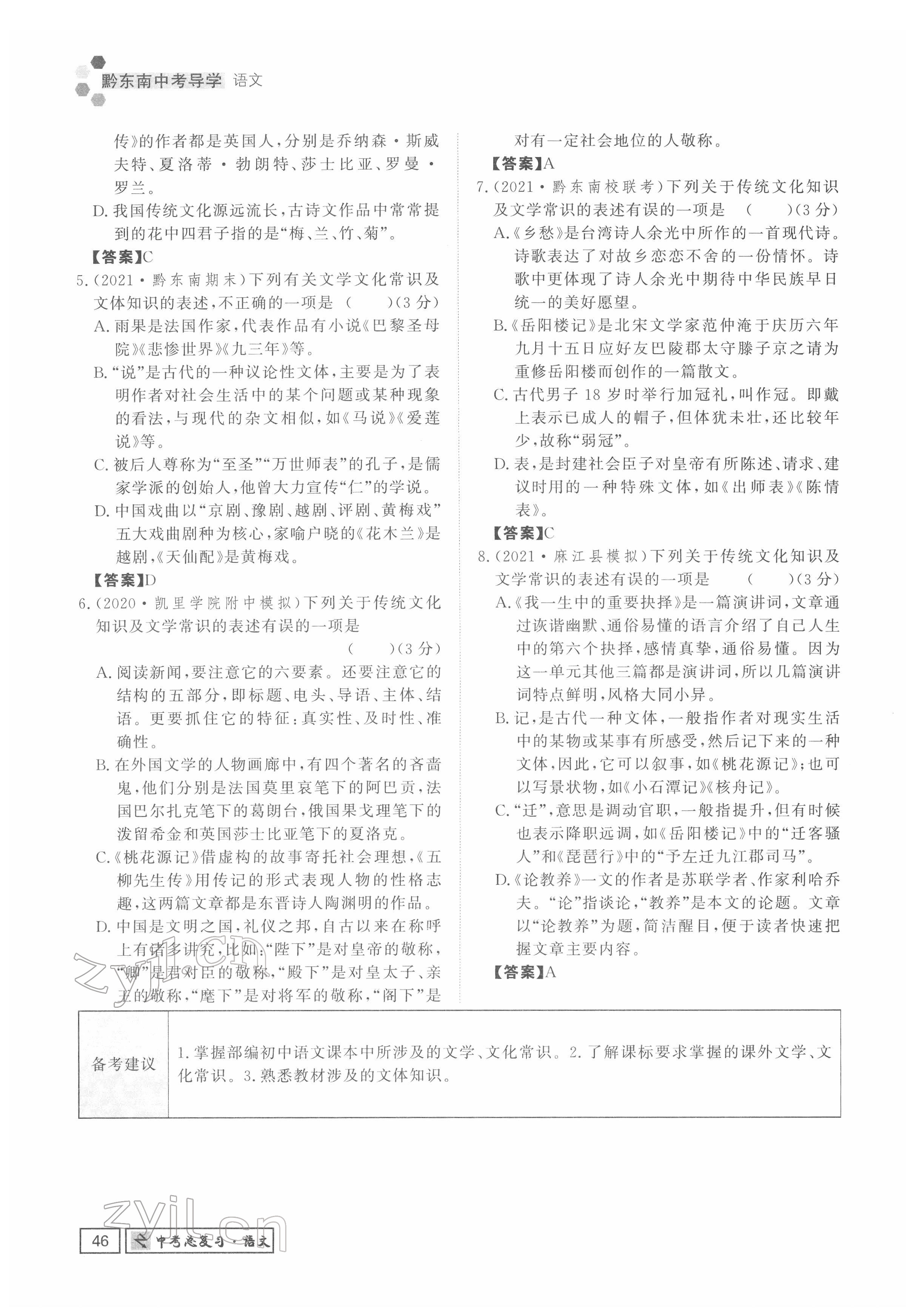 注:目前有些书本章节名称可能整理的还不是很完善,但都是按照顺序排列的,请同学们按照顺序仔细查找。练习册 2022年黔东南中考导学语文 答案主要是用来给同学们做完题方便对答案用的,请勿直接抄袭。