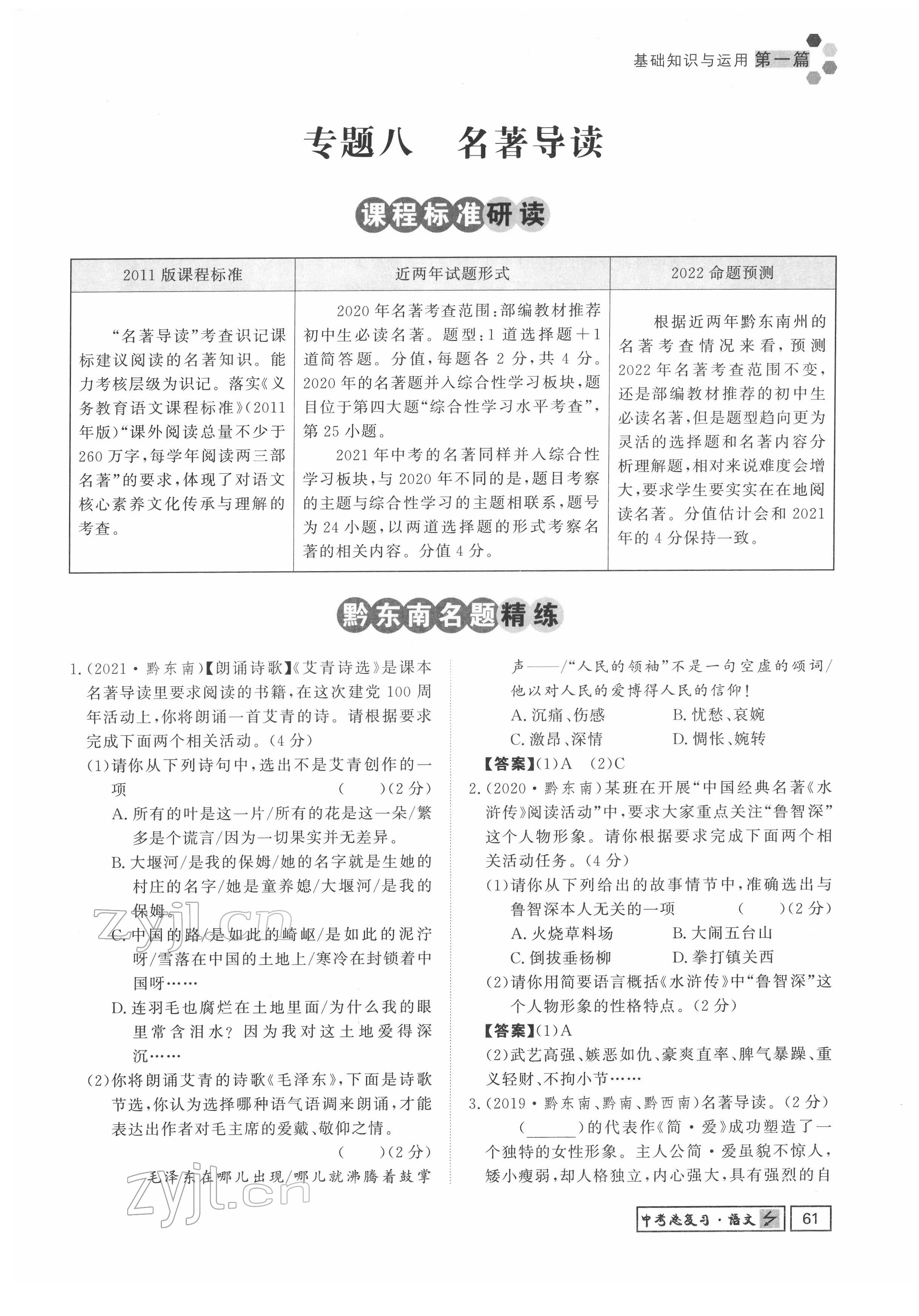 注:目前有些书本章节名称可能整理的还不是很完善,但都是按照顺序排列的,请同学们按照顺序仔细查找。练习册 2022年黔东南中考导学语文 答案主要是用来给同学们做完题方便对答案用的,请勿直接抄袭。
