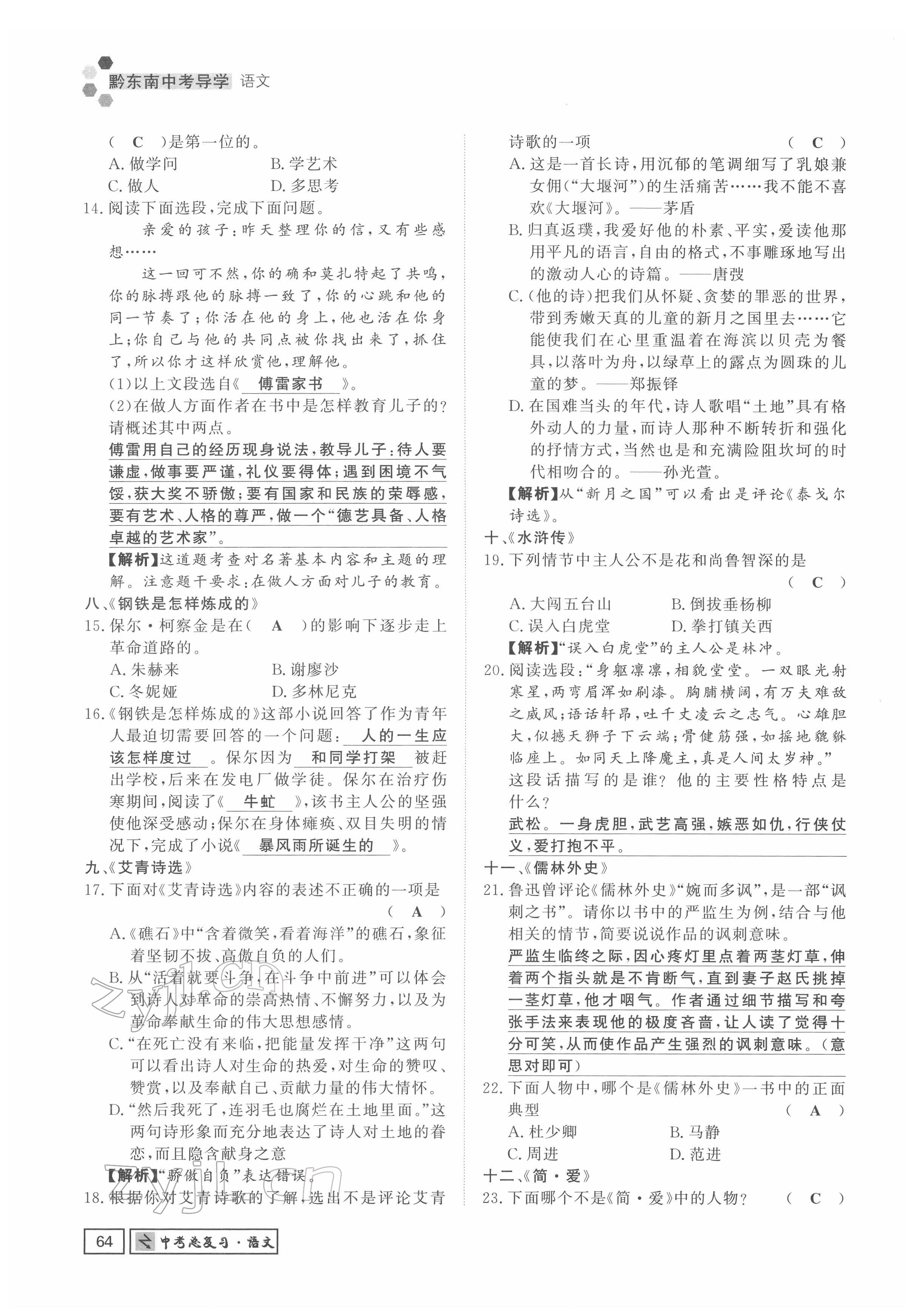 注:目前有些书本章节名称可能整理的还不是很完善,但都是按照顺序排列的,请同学们按照顺序仔细查找。练习册 2022年黔东南中考导学语文 答案主要是用来给同学们做完题方便对答案用的,请勿直接抄袭。