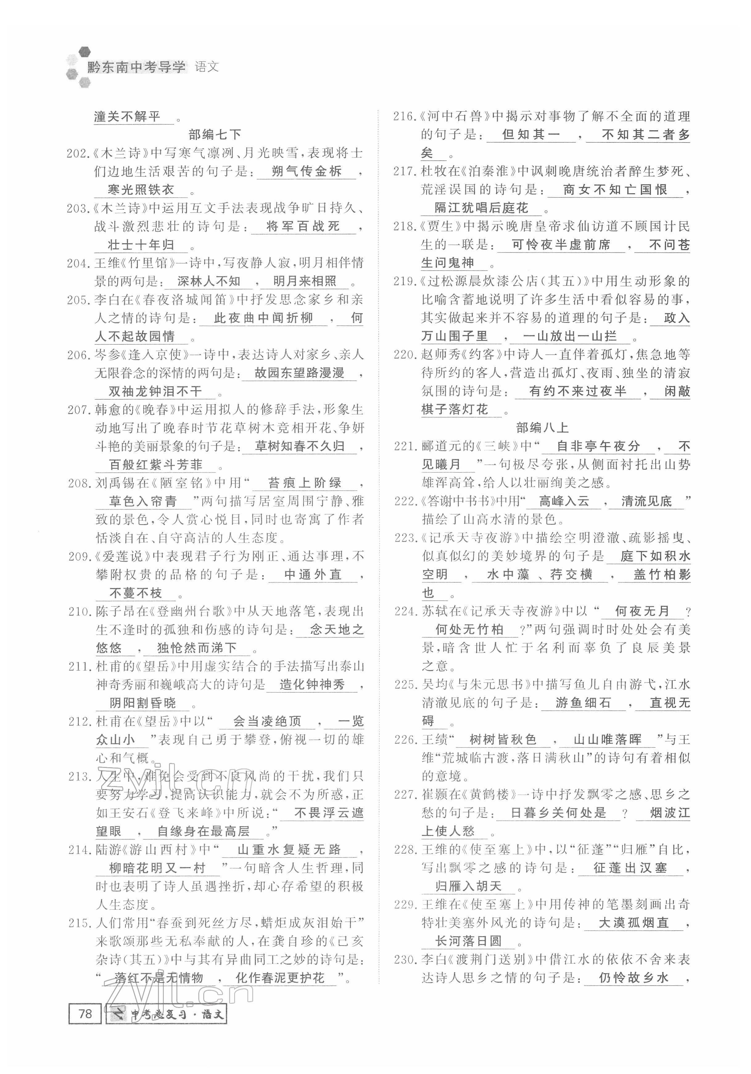 注:目前有些书本章节名称可能整理的还不是很完善,但都是按照顺序排列的,请同学们按照顺序仔细查找。练习册 2022年黔东南中考导学语文 答案主要是用来给同学们做完题方便对答案用的,请勿直接抄袭。