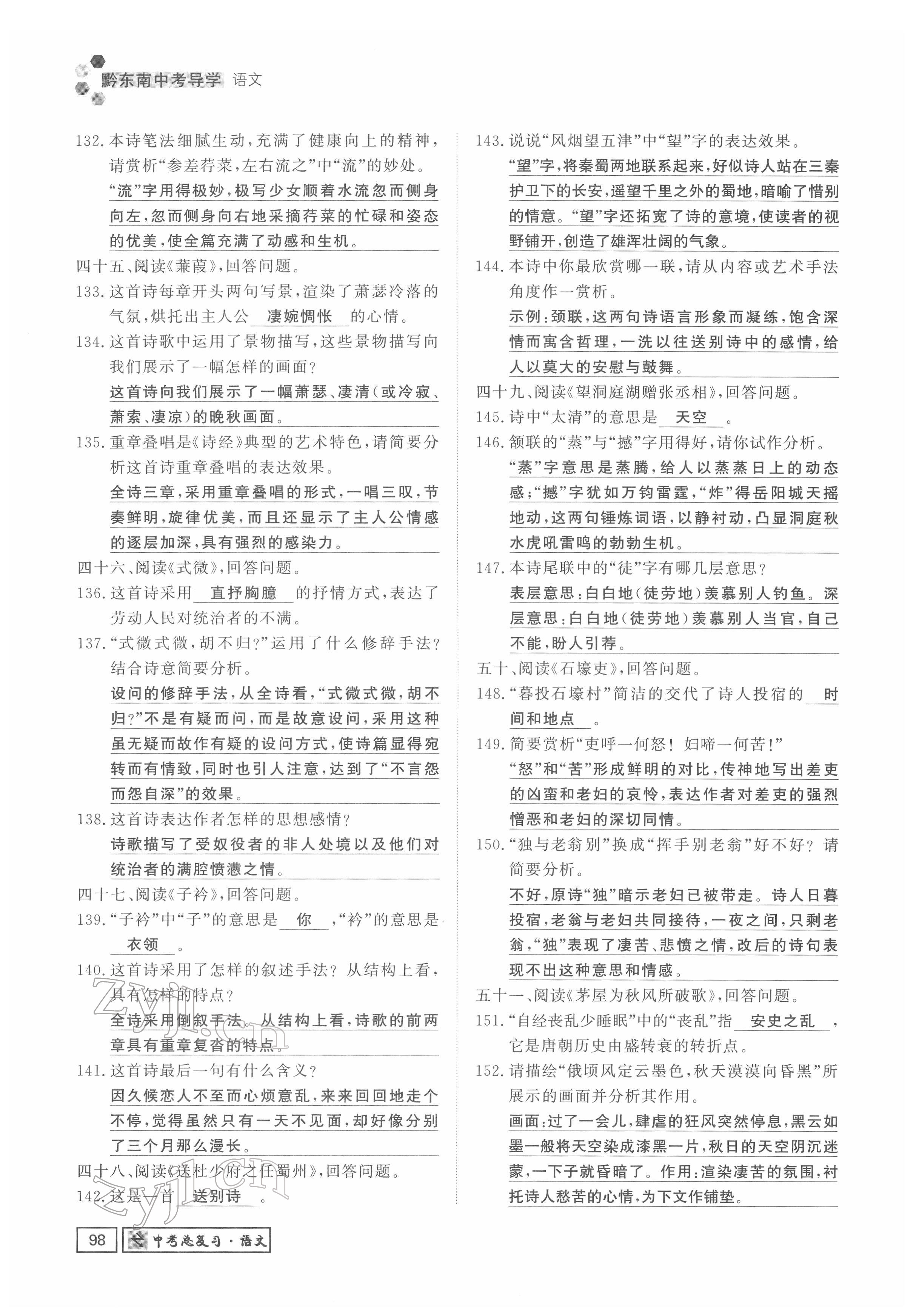 注:目前有些书本章节名称可能整理的还不是很完善,但都是按照顺序排列的,请同学们按照顺序仔细查找。练习册 2022年黔东南中考导学语文 答案主要是用来给同学们做完题方便对答案用的,请勿直接抄袭。