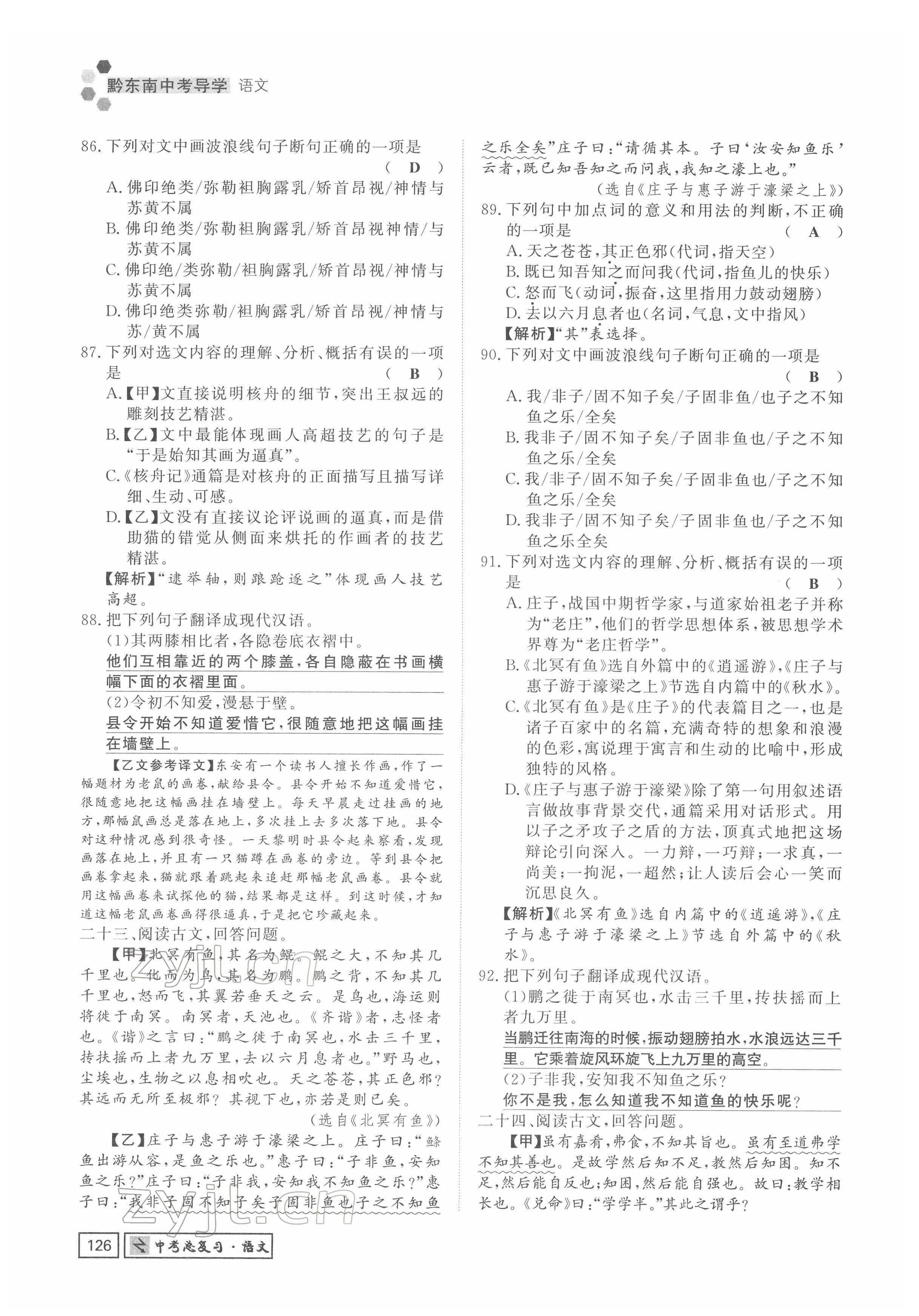 注:目前有些书本章节名称可能整理的还不是很完善,但都是按照顺序排列的,请同学们按照顺序仔细查找。练习册 2022年黔东南中考导学语文 答案主要是用来给同学们做完题方便对答案用的,请勿直接抄袭。