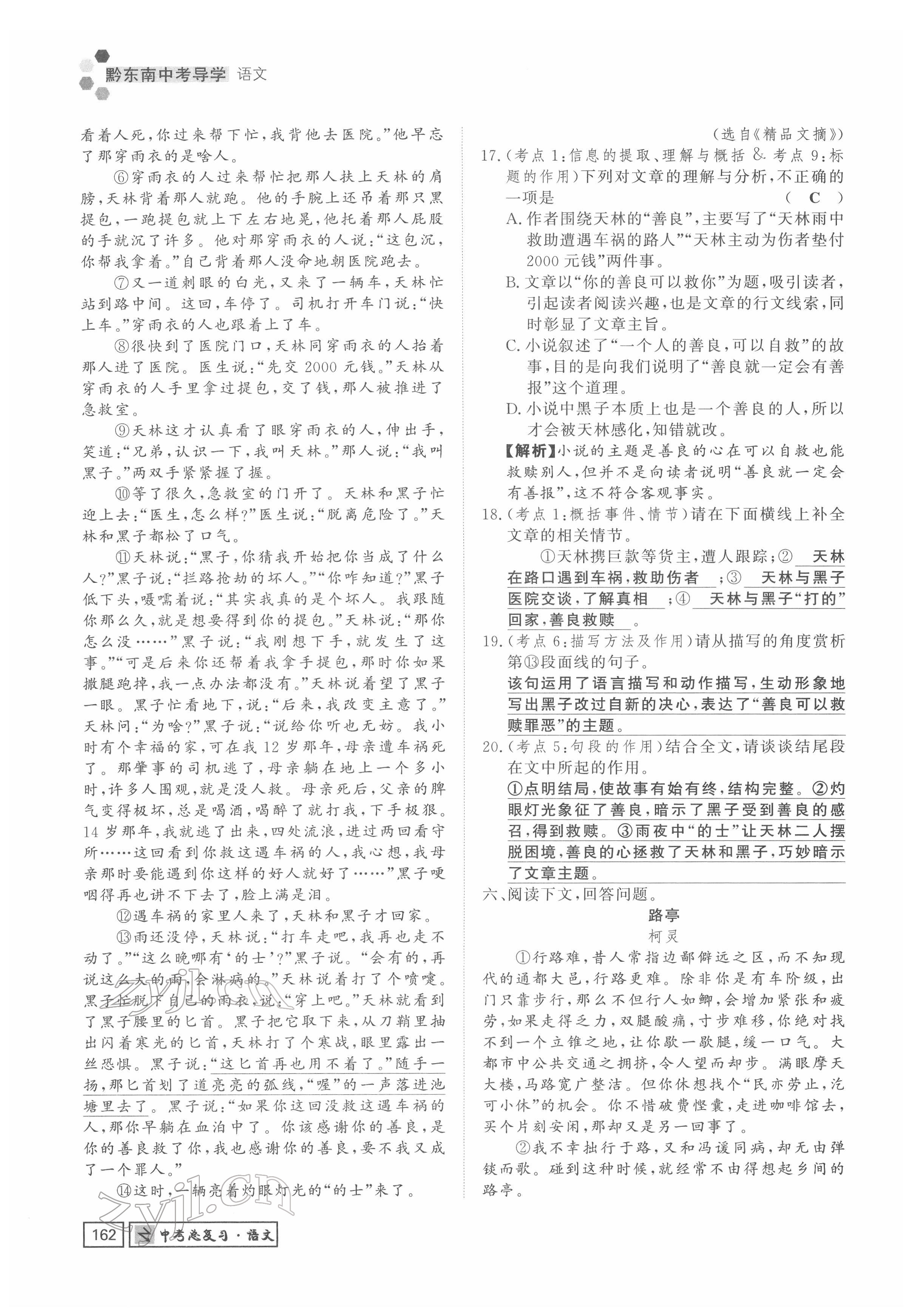 注:目前有些书本章节名称可能整理的还不是很完善,但都是按照顺序排列的,请同学们按照顺序仔细查找。练习册 2022年黔东南中考导学语文 答案主要是用来给同学们做完题方便对答案用的,请勿直接抄袭。