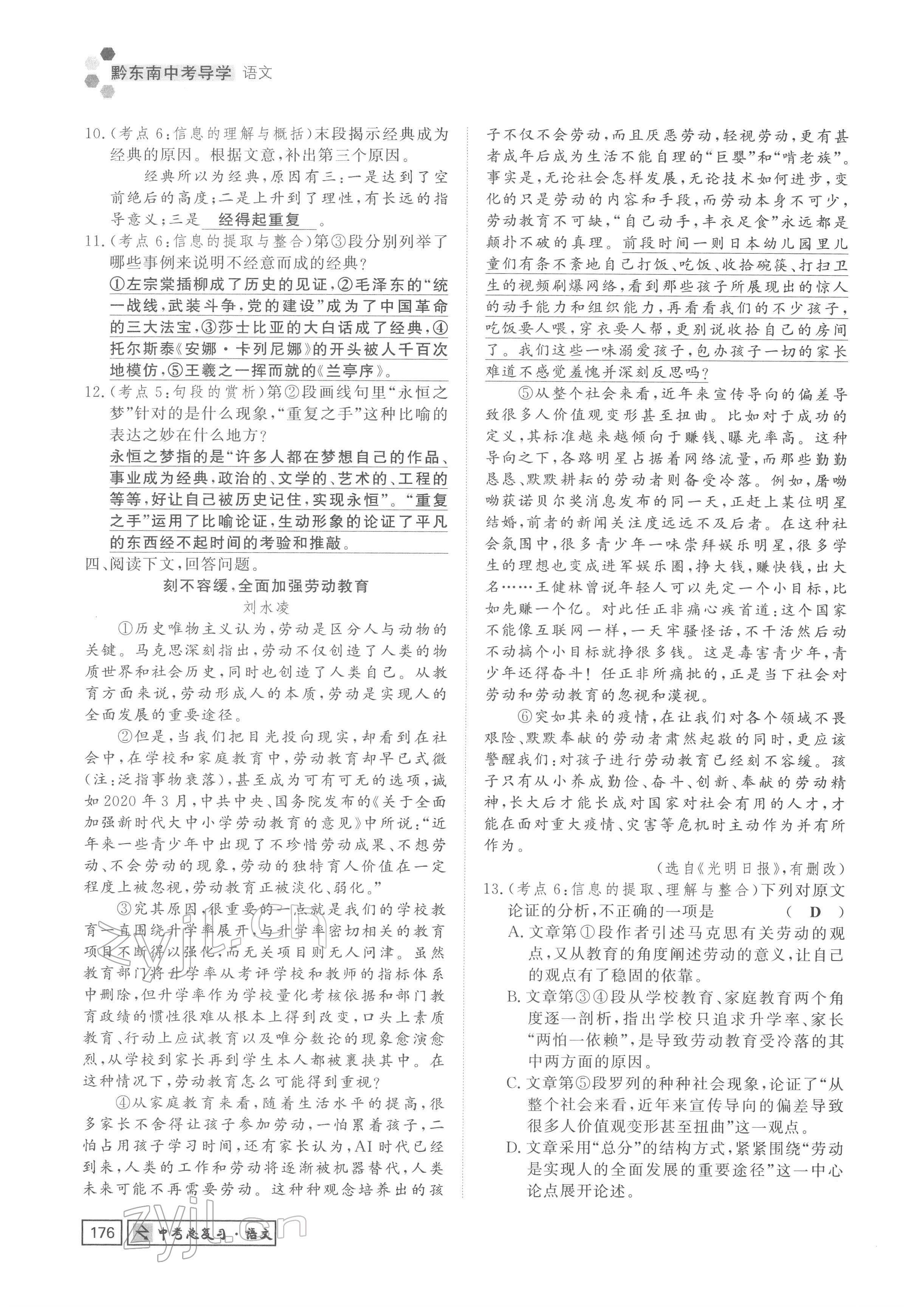 注:目前有些书本章节名称可能整理的还不是很完善,但都是按照顺序排列的,请同学们按照顺序仔细查找。练习册 2022年黔东南中考导学语文 答案主要是用来给同学们做完题方便对答案用的,请勿直接抄袭。