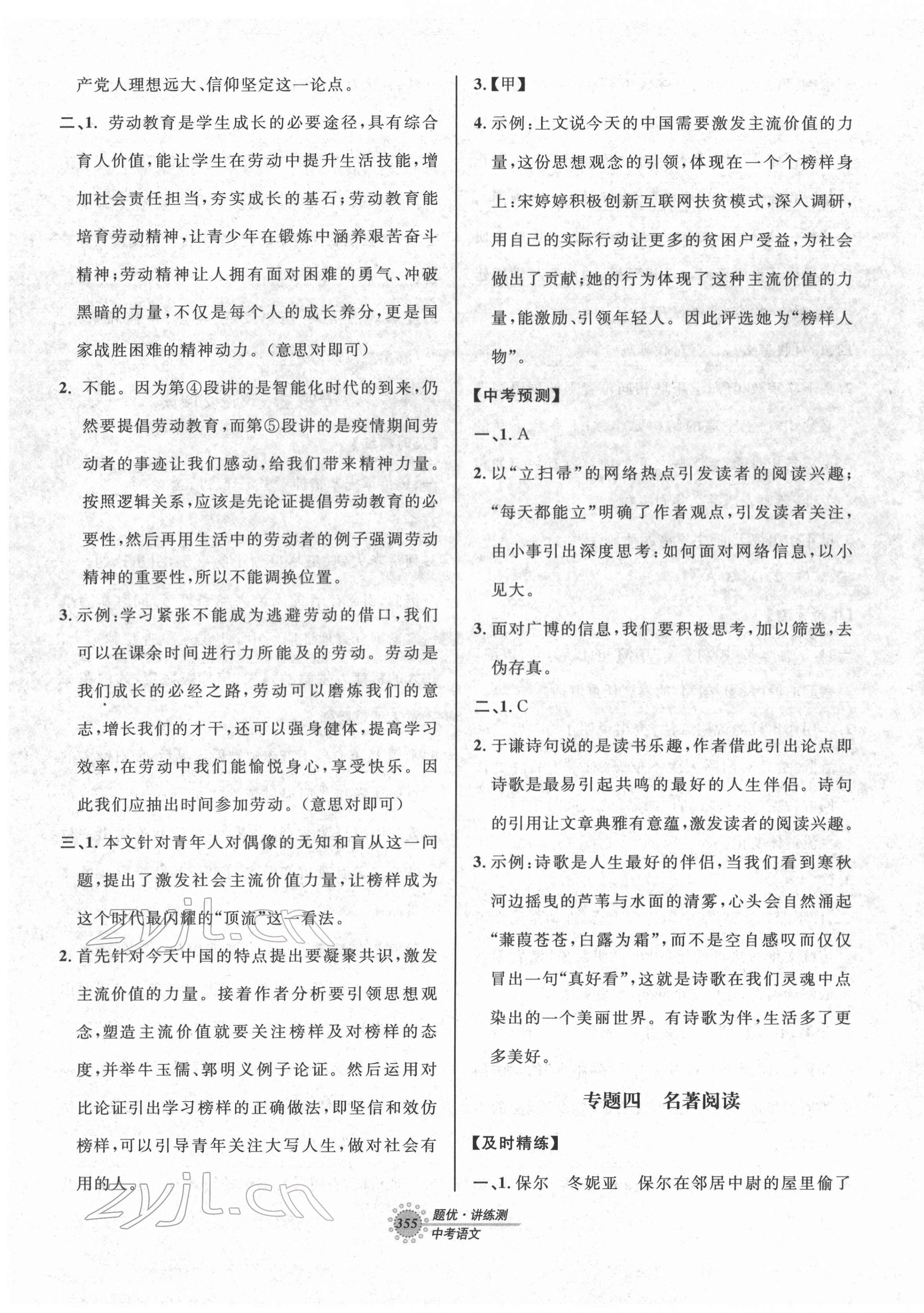 注:目前有些书本章节名称可能整理的还不是很完善,但都是按照顺序排列的,请同学们按照顺序仔细查找。练习册 2022年题优讲练测中考语文 答案主要是用来给同学们做完题方便对答案用的,请勿直接抄袭。