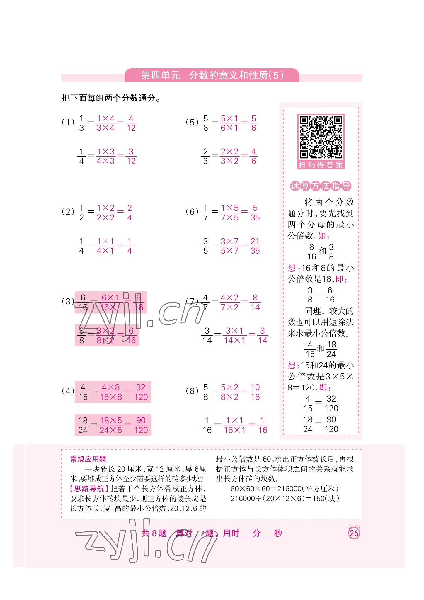 2022年口算速算天天练新疆青少年出版社五年级数学下册人教版