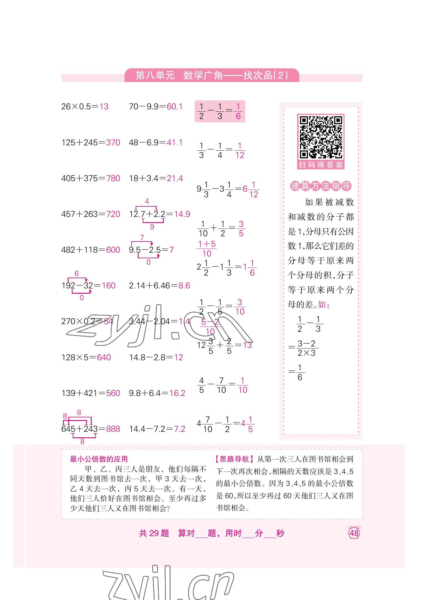 注:目前有些书本章节名称可能整理的还不是很完善,但都是按照顺序排列的,请同学们按照顺序仔细查找。练习册 2022年口算速算天天练新疆青少年出版社五年级数学下册人教版 答案主要是用来给同学们做完题方便对答案用的,请勿直接抄袭。