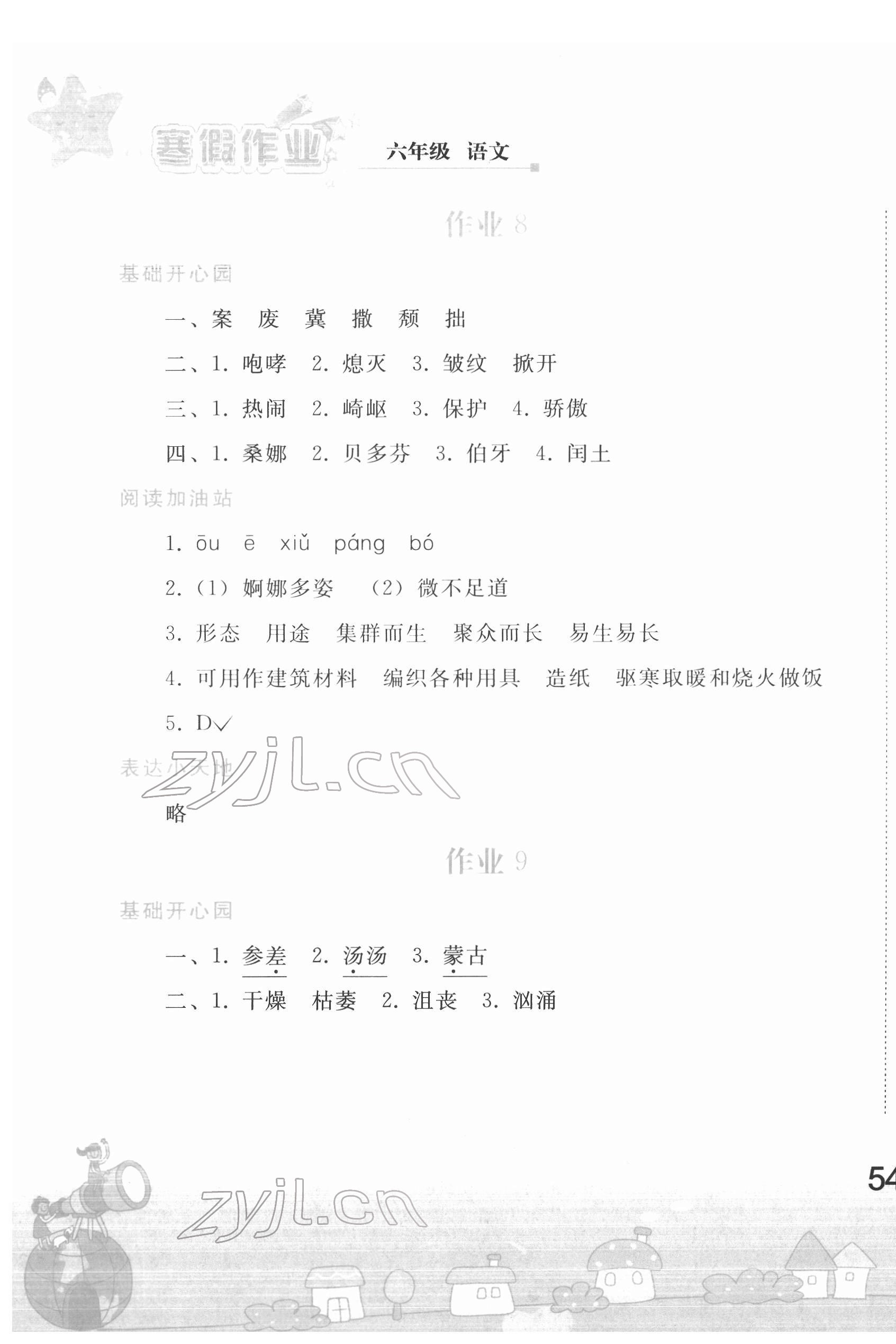 《2022年寒假作业人民教育出版社六年级语文人教版》