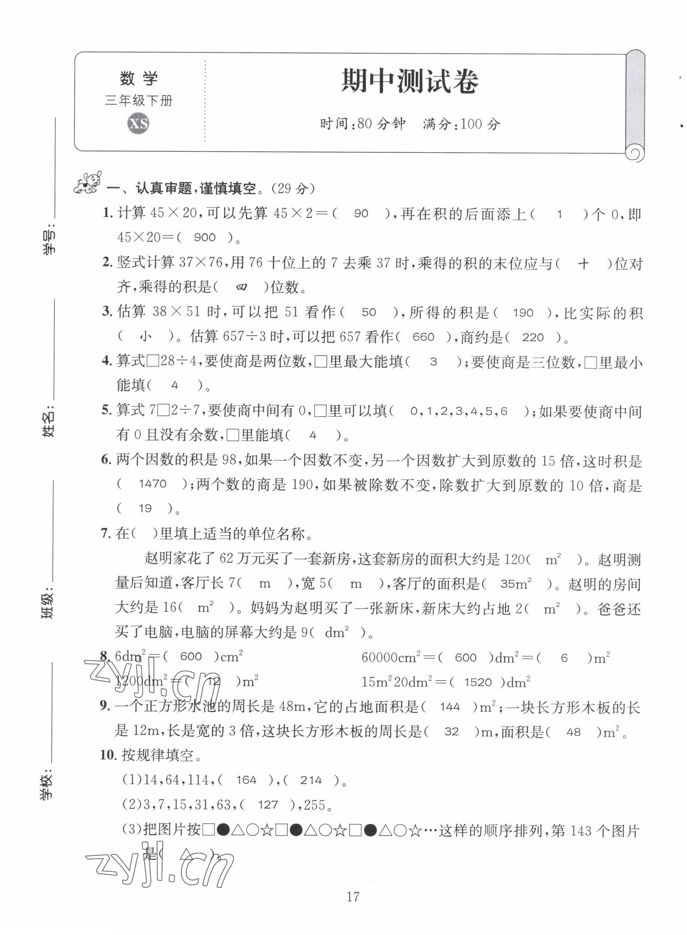 注:目前有些书本章节名称可能整理的还不是很完善,但都是按照顺序排列的,请同学们按照顺序仔细查找。练习册 2022年创新名校秘题三年级数学下册西师大版 答案主要是用来给同学们做完题方便对答案用的,请勿直接抄袭。