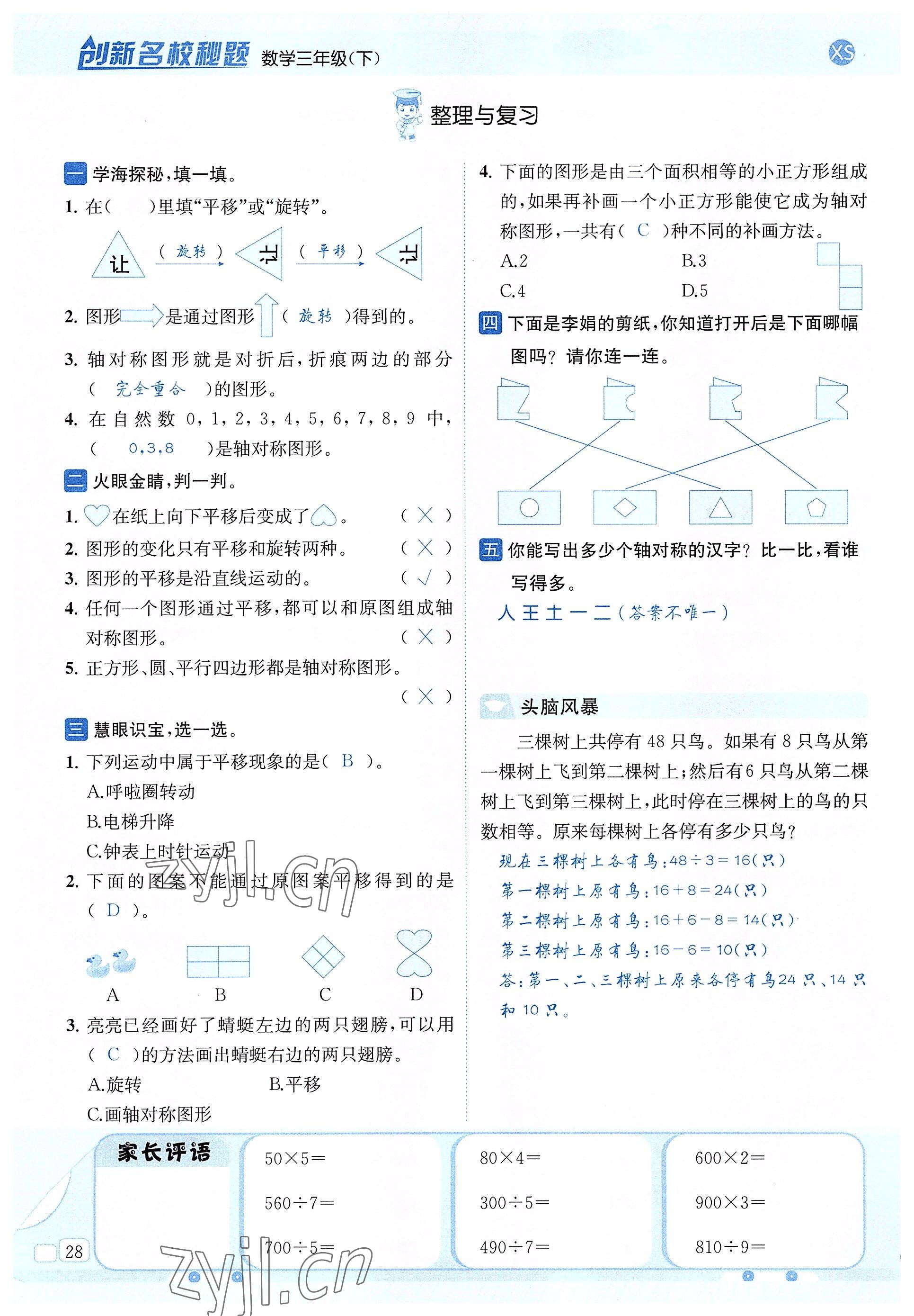 注:目前有些书本章节名称可能整理的还不是很完善,但都是按照顺序排列的,请同学们按照顺序仔细查找。练习册 2022年创新名校秘题三年级数学下册西师大版 答案主要是用来给同学们做完题方便对答案用的,请勿直接抄袭。