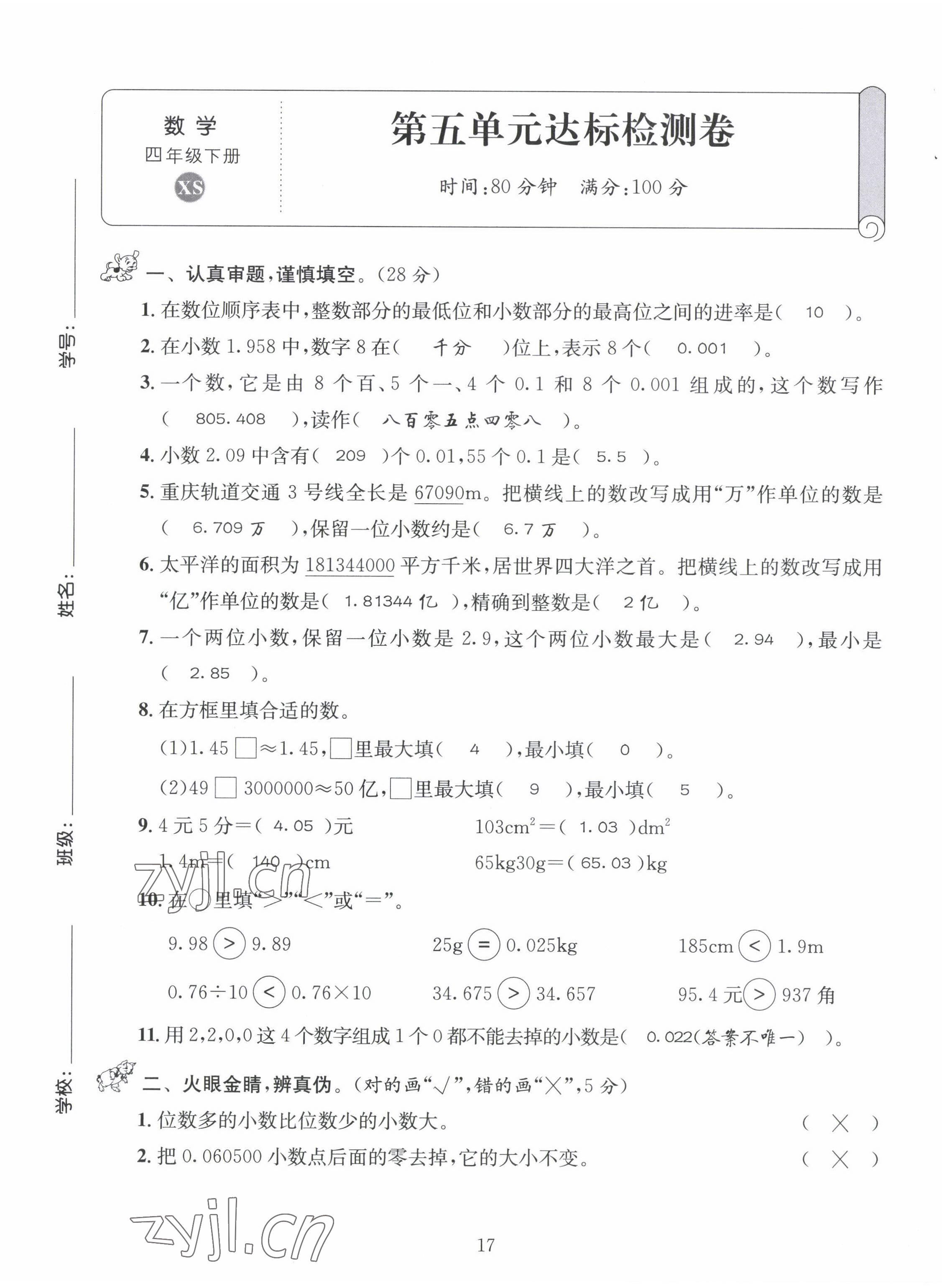 注:目前有些书本章节名称可能整理的还不是很完善,但都是按照顺序排列的,请同学们按照顺序仔细查找。练习册 2022年创新名校秘题四年级数学下册西师大版 答案主要是用来给同学们做完题方便对答案用的,请勿直接抄袭。