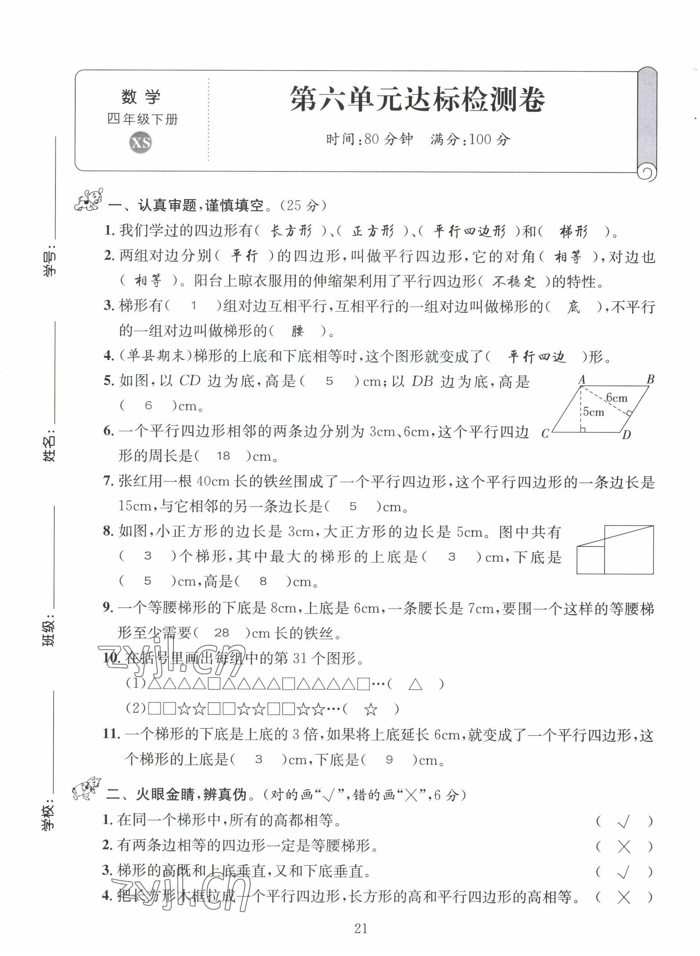 注:目前有些书本章节名称可能整理的还不是很完善,但都是按照顺序排列的,请同学们按照顺序仔细查找。练习册 2022年创新名校秘题四年级数学下册西师大版 答案主要是用来给同学们做完题方便对答案用的,请勿直接抄袭。