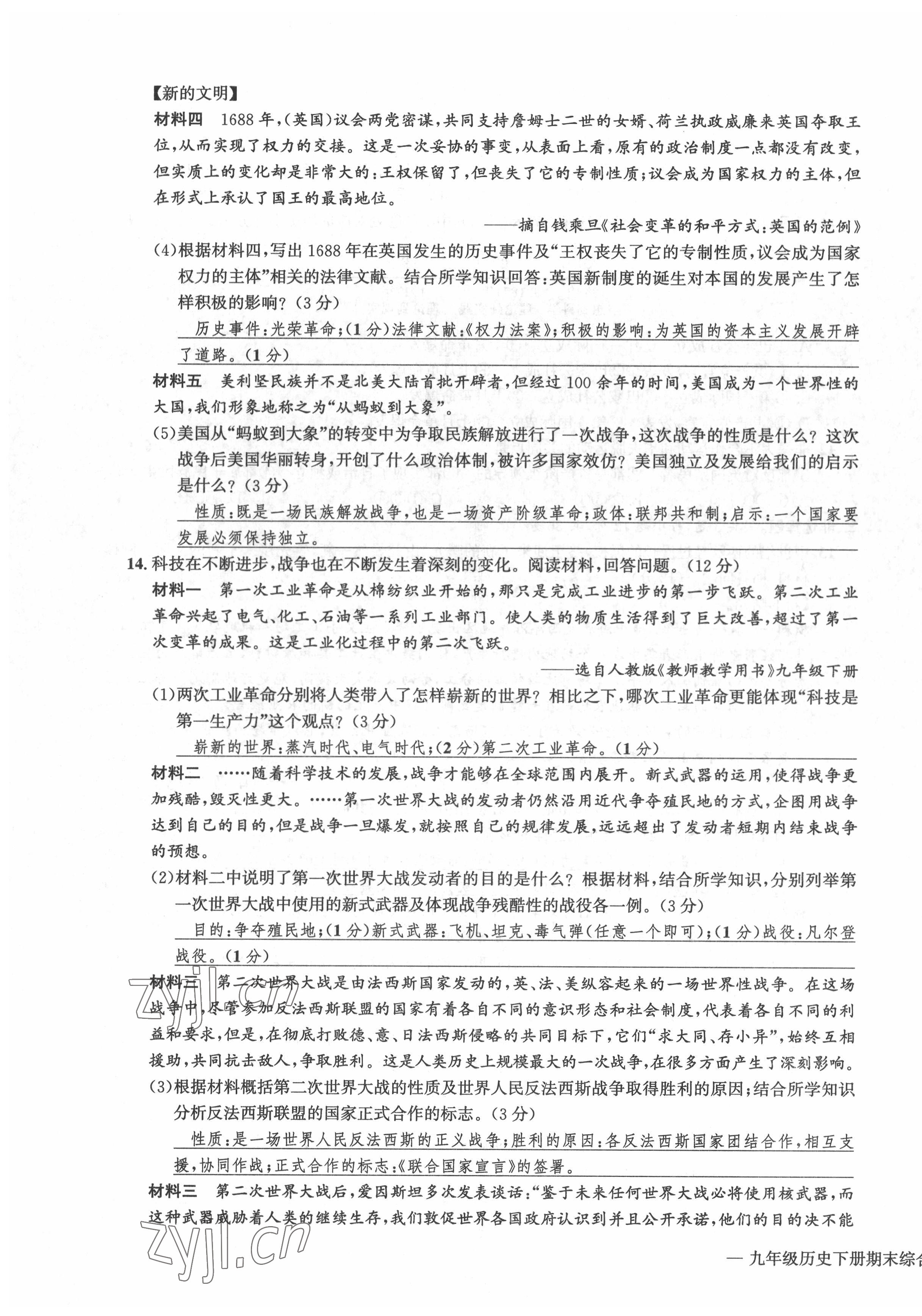 2022年学业评价测评卷九年级道德与法治全一册人教版
