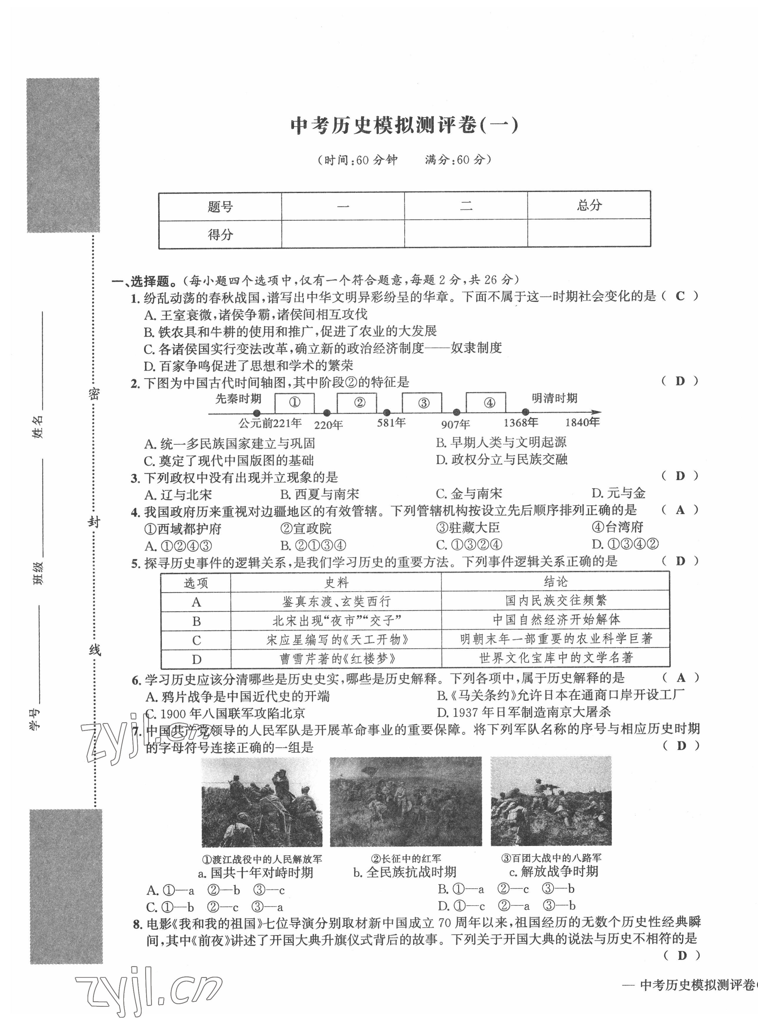 2022年学业评价测评卷九年级道德与法治全一册人教版