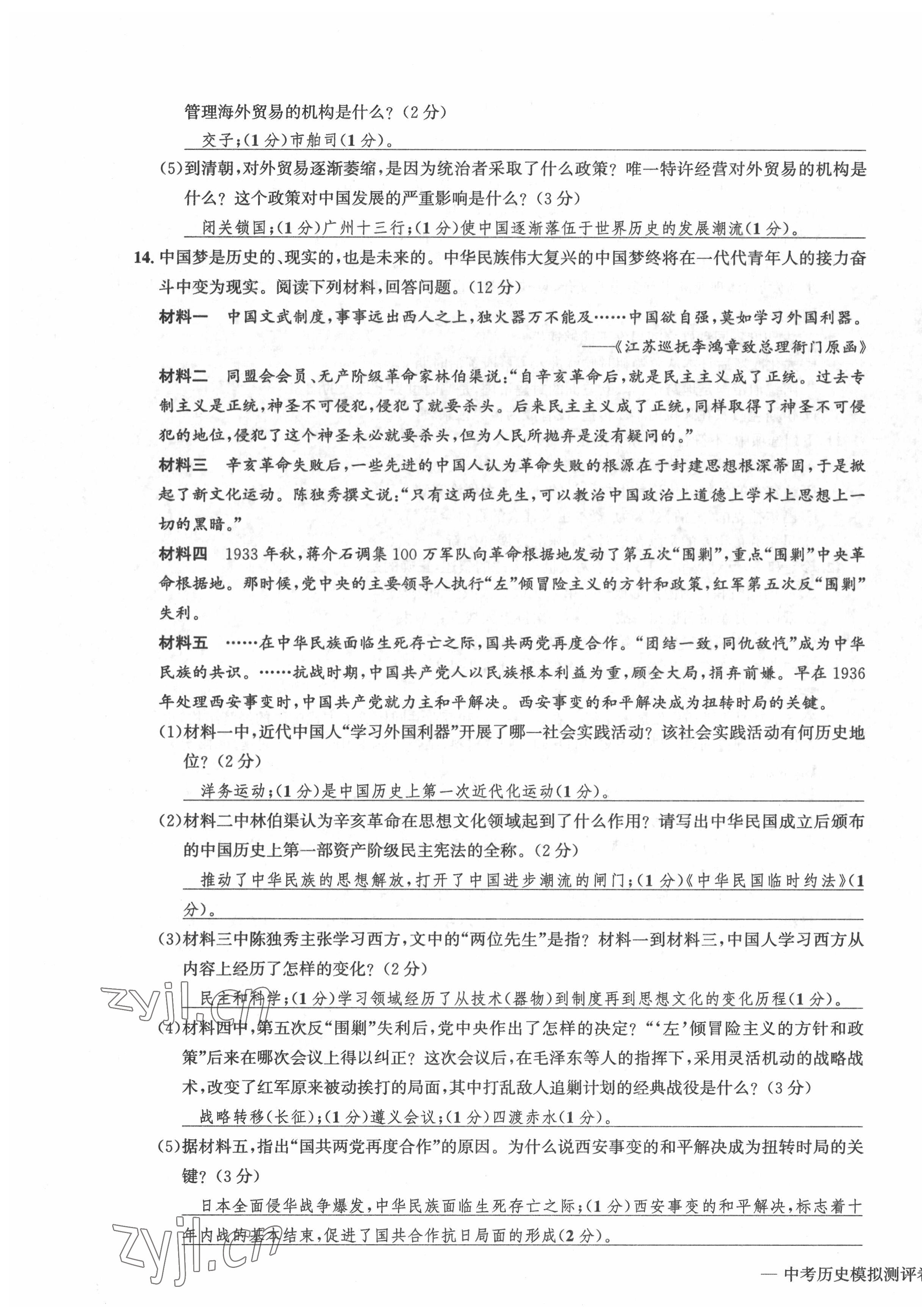 2022年学业评价测评卷九年级道德与法治全一册人教版