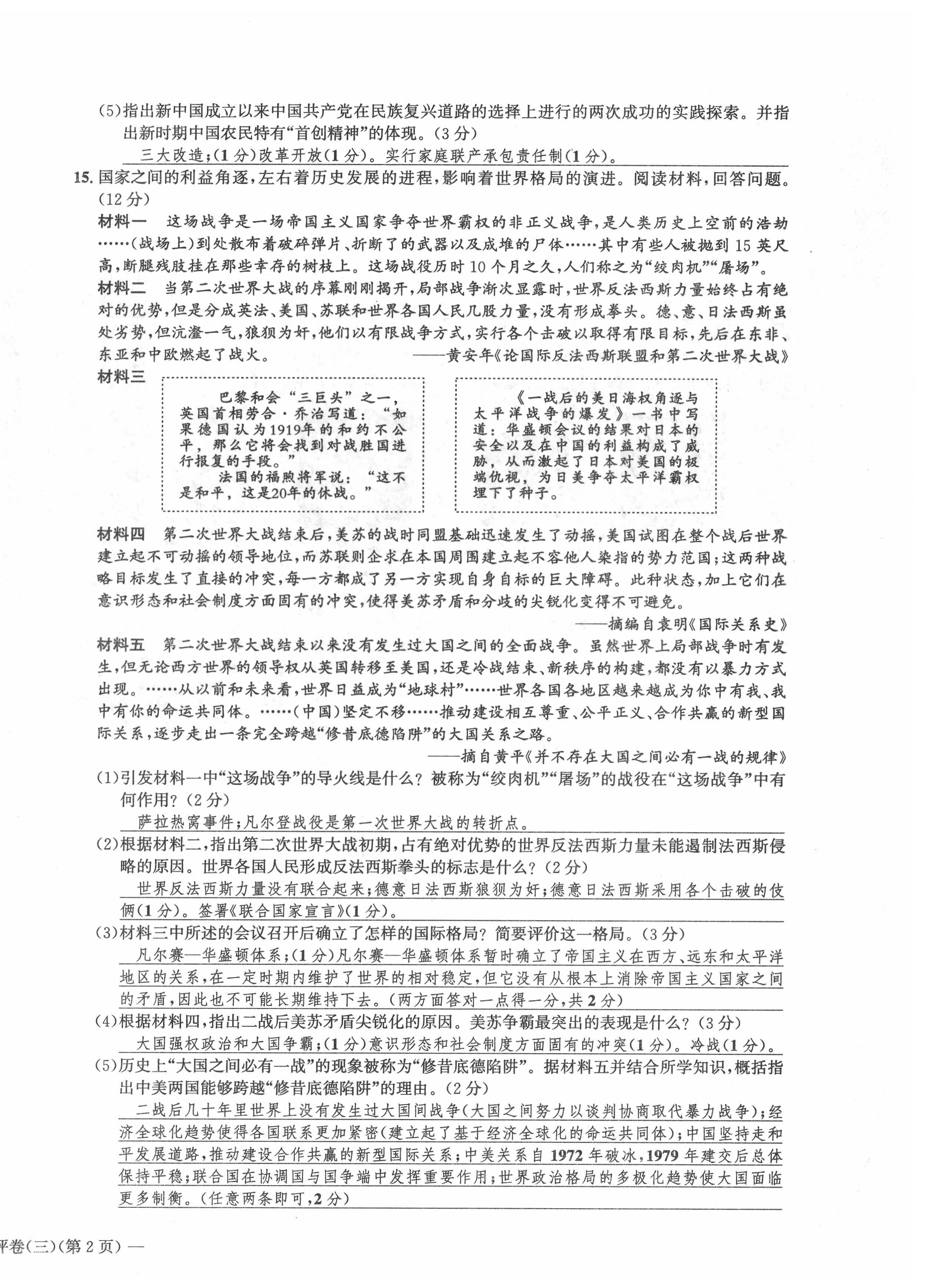 2022年学业评价测评卷九年级道德与法治全一册人教版