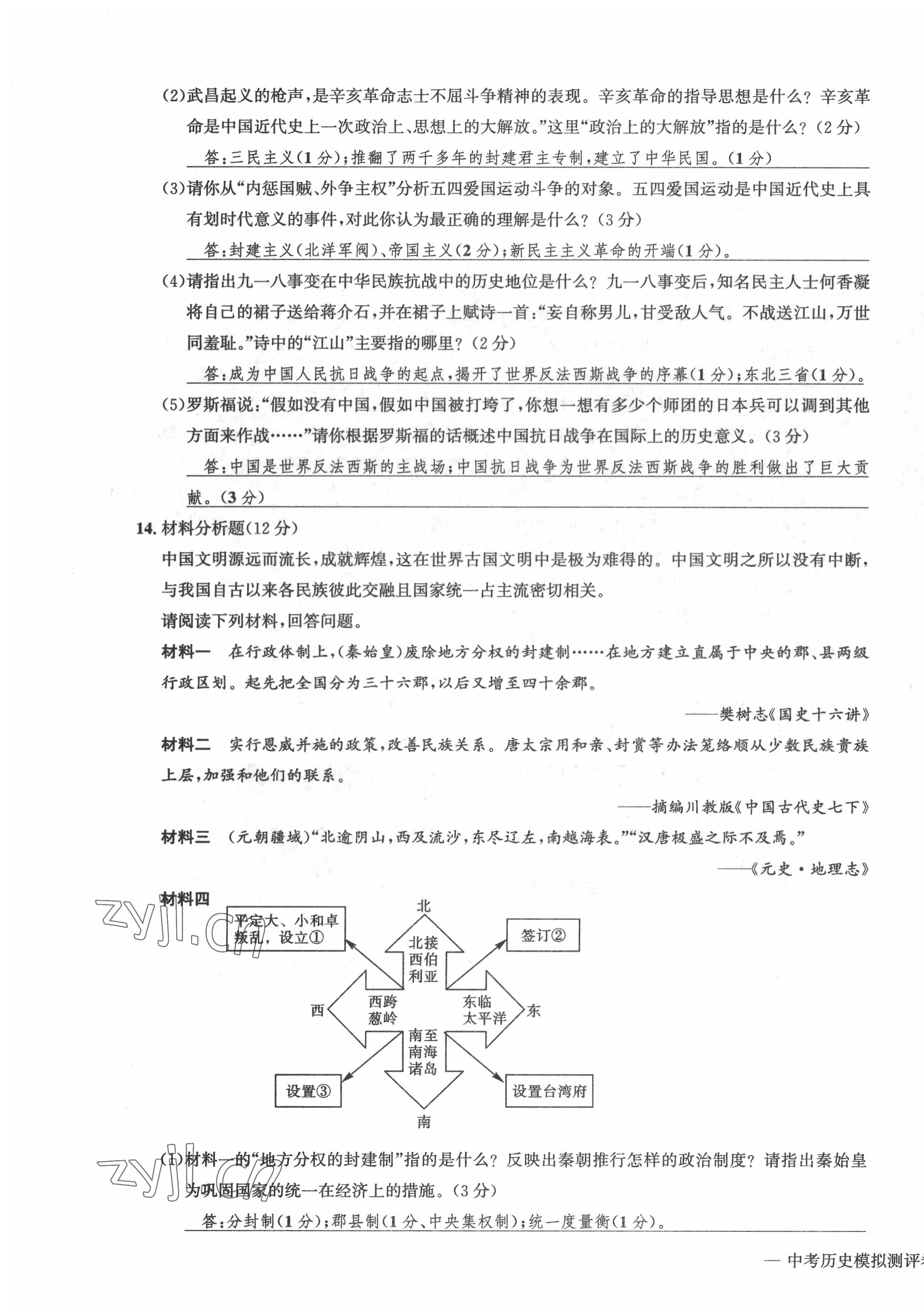 2022年学业评价测评卷九年级道德与法治全一册人教版