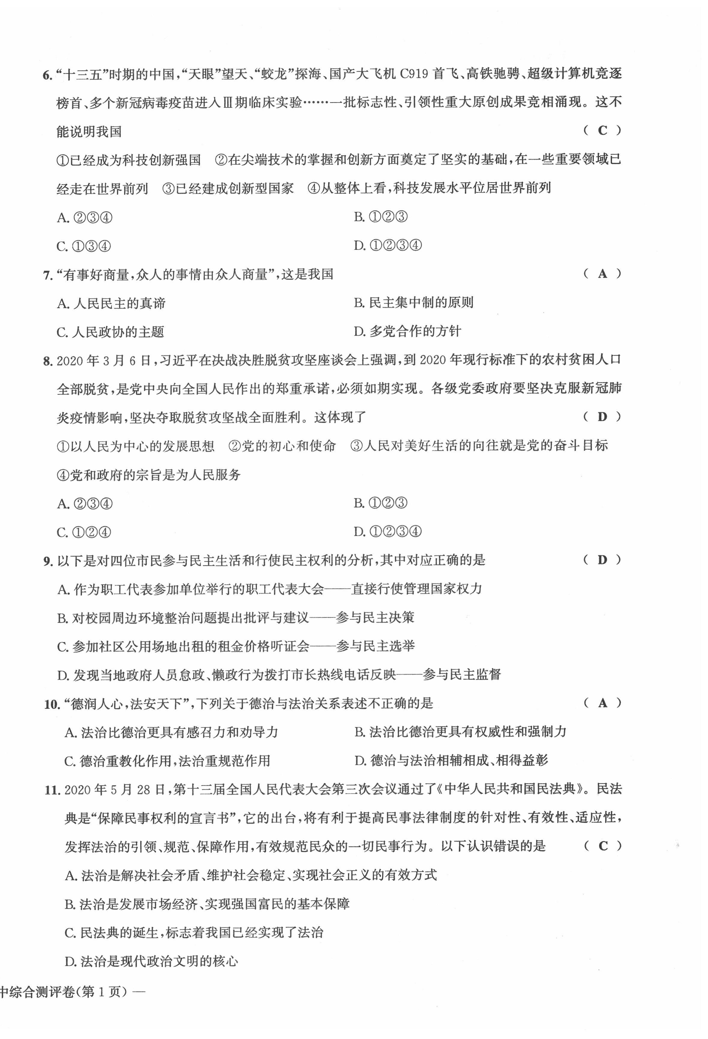 注:目前有些书本章节名称可能整理的还不是很完善,但都是按照顺序排列的,请同学们按照顺序仔细查找。练习册 2022年学业评价测评卷九年级道德与法治全一册人教版 答案主要是用来给同学们做完题方便对答案用的,请勿直接抄袭。
