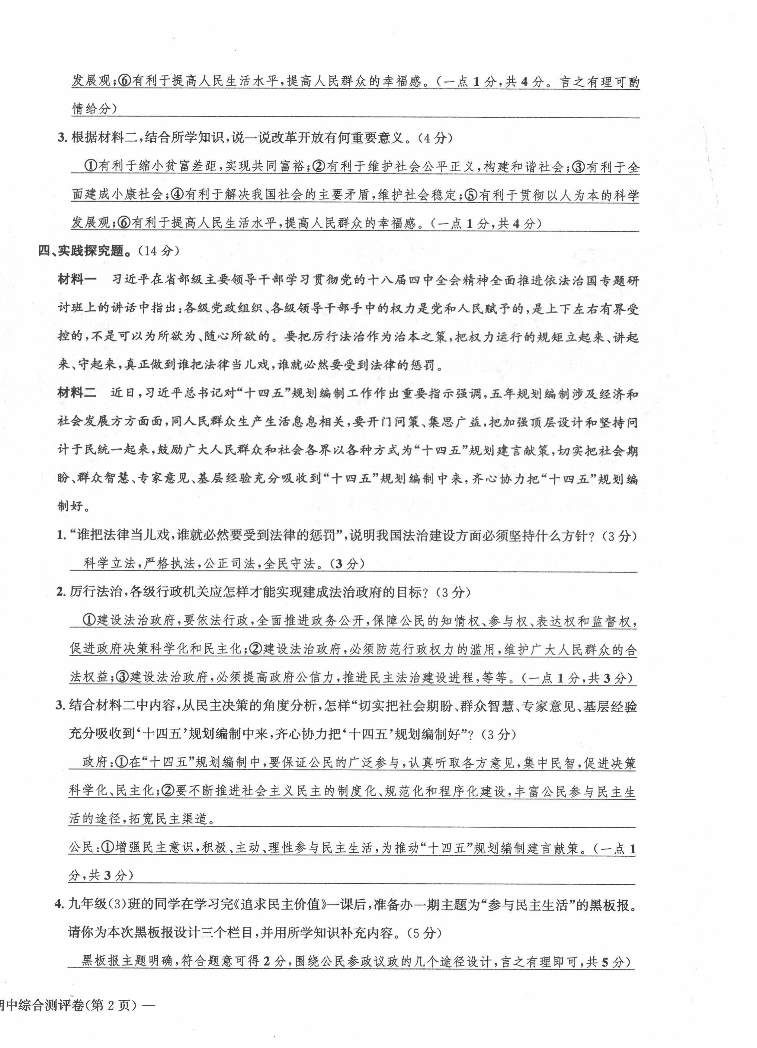 2022年学业评价测评卷九年级道德与法治全一册人教版