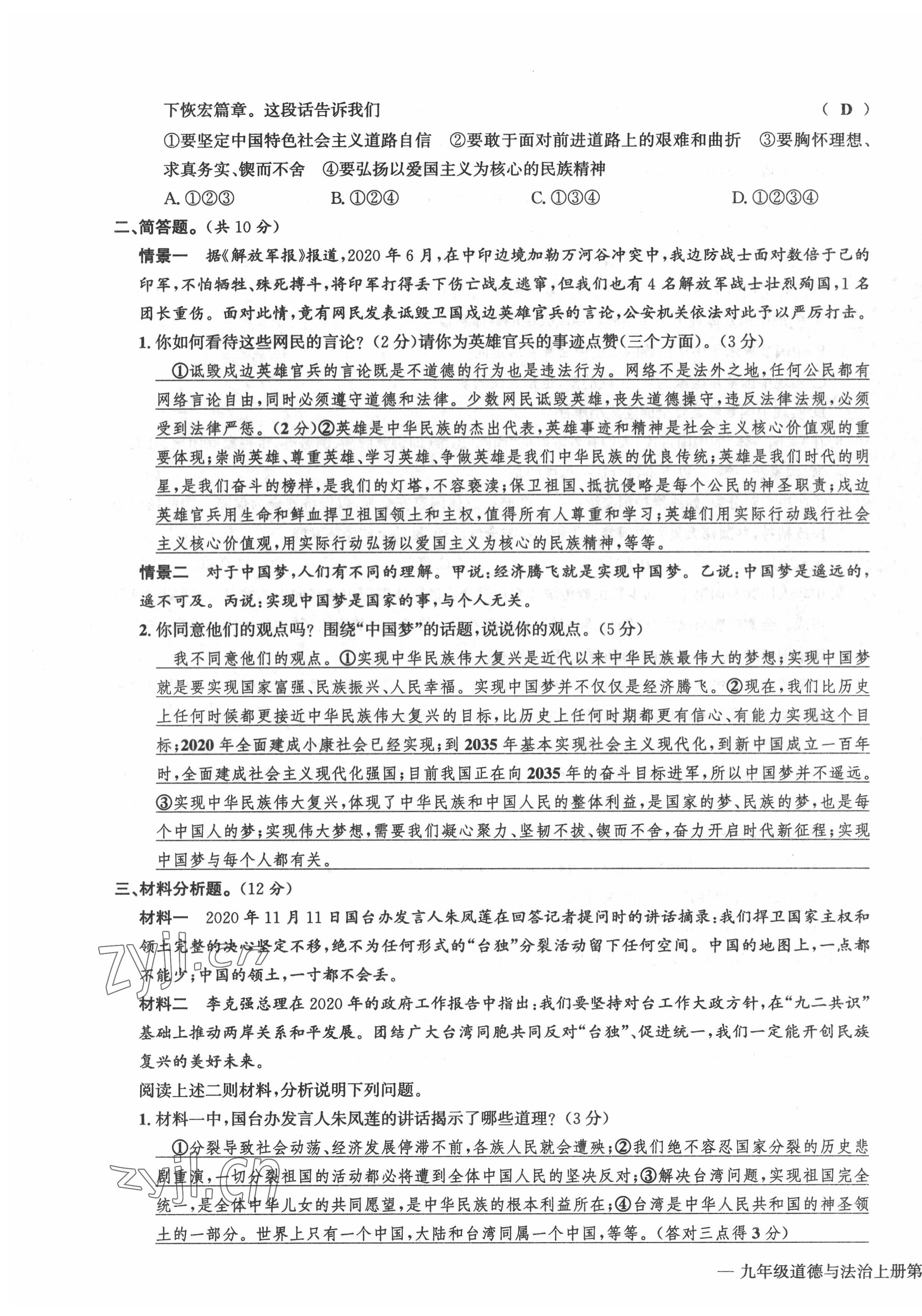 注:目前有些书本章节名称可能整理的还不是很完善,但都是按照顺序排列的,请同学们按照顺序仔细查找。练习册 2022年学业评价测评卷九年级道德与法治全一册人教版 答案主要是用来给同学们做完题方便对答案用的,请勿直接抄袭。