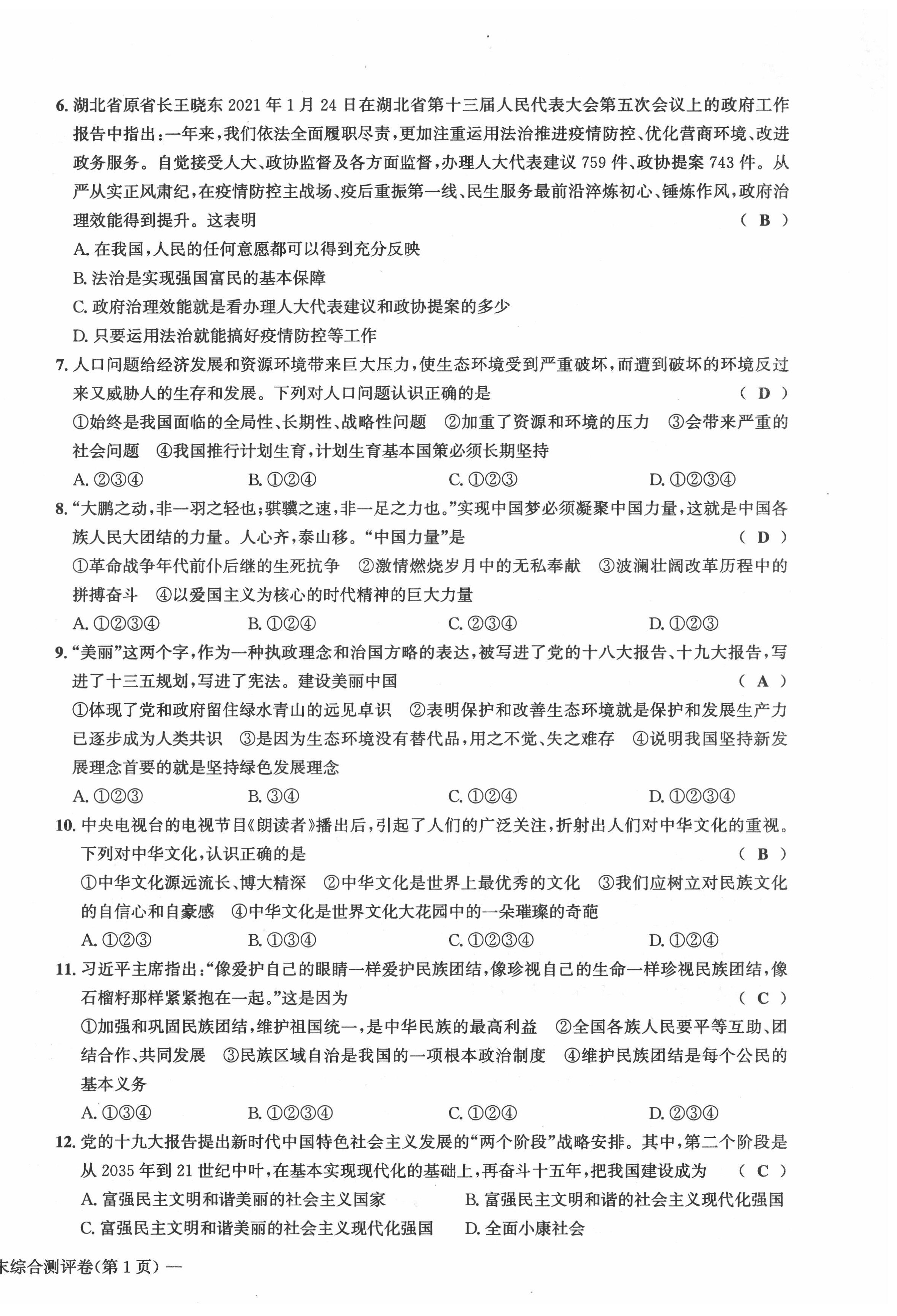 2022年学业评价测评卷九年级道德与法治全一册人教版