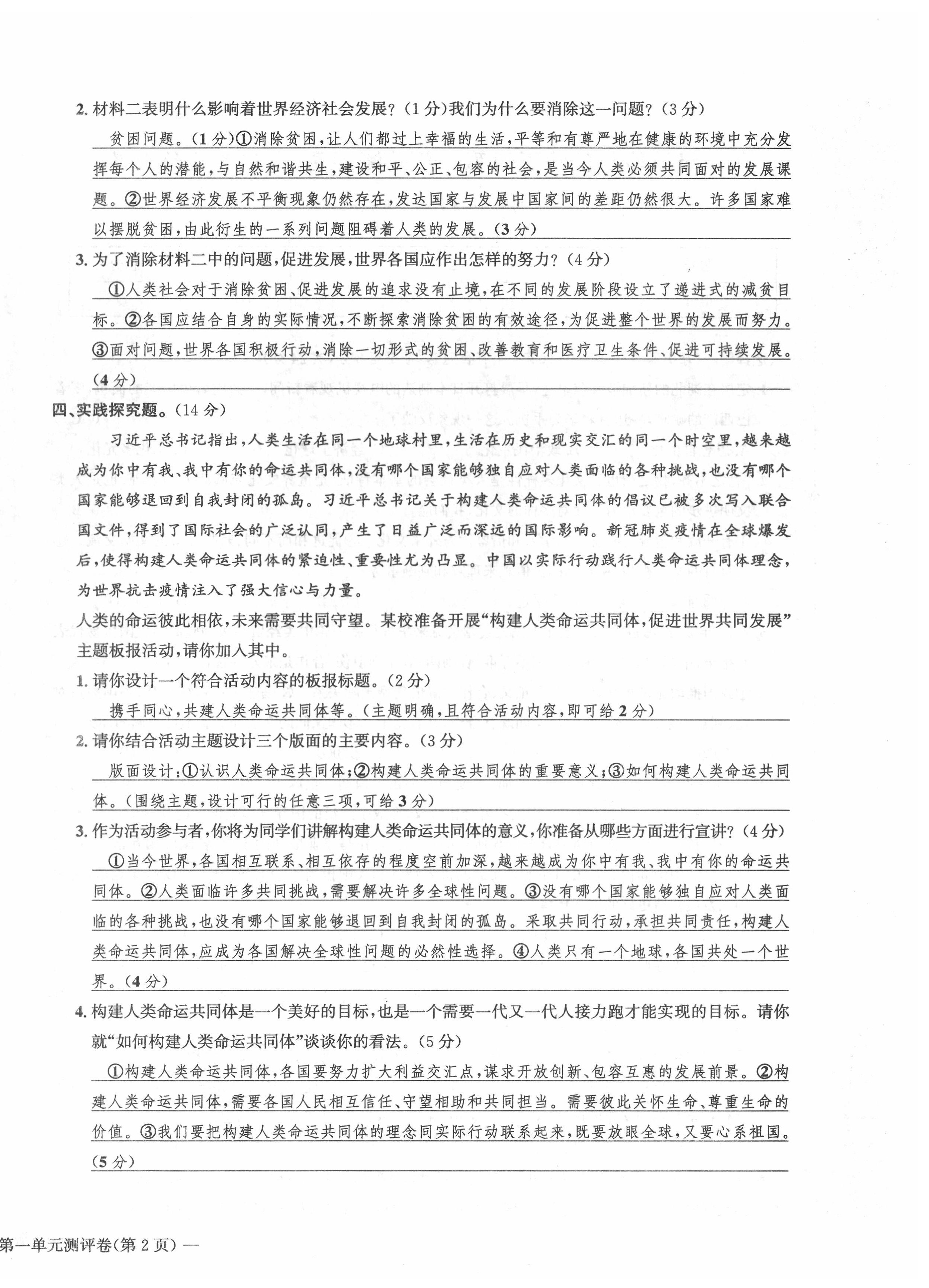 2022年学业评价测评卷九年级道德与法治全一册人教版