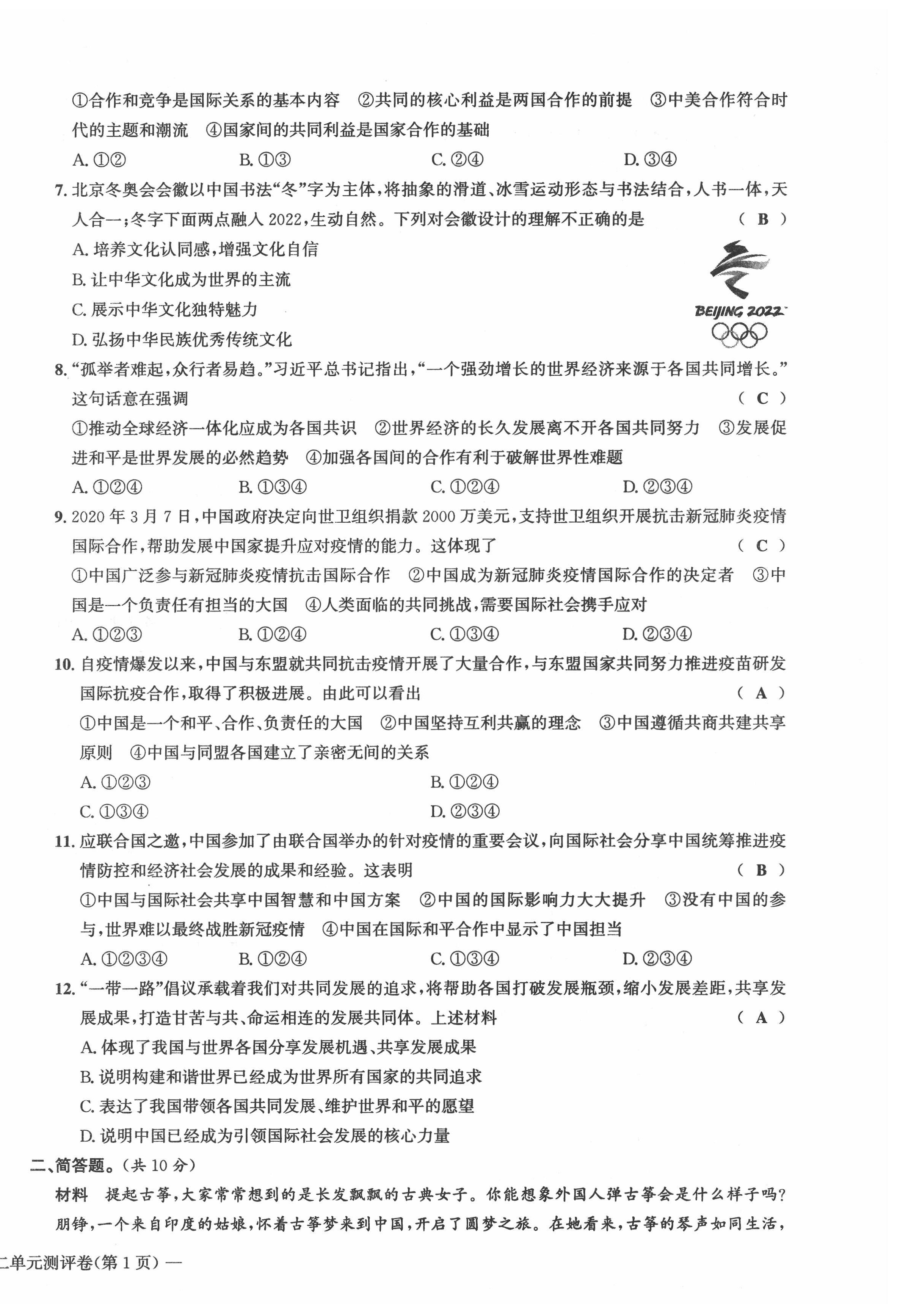 2022年学业评价测评卷九年级道德与法治全一册人教版
