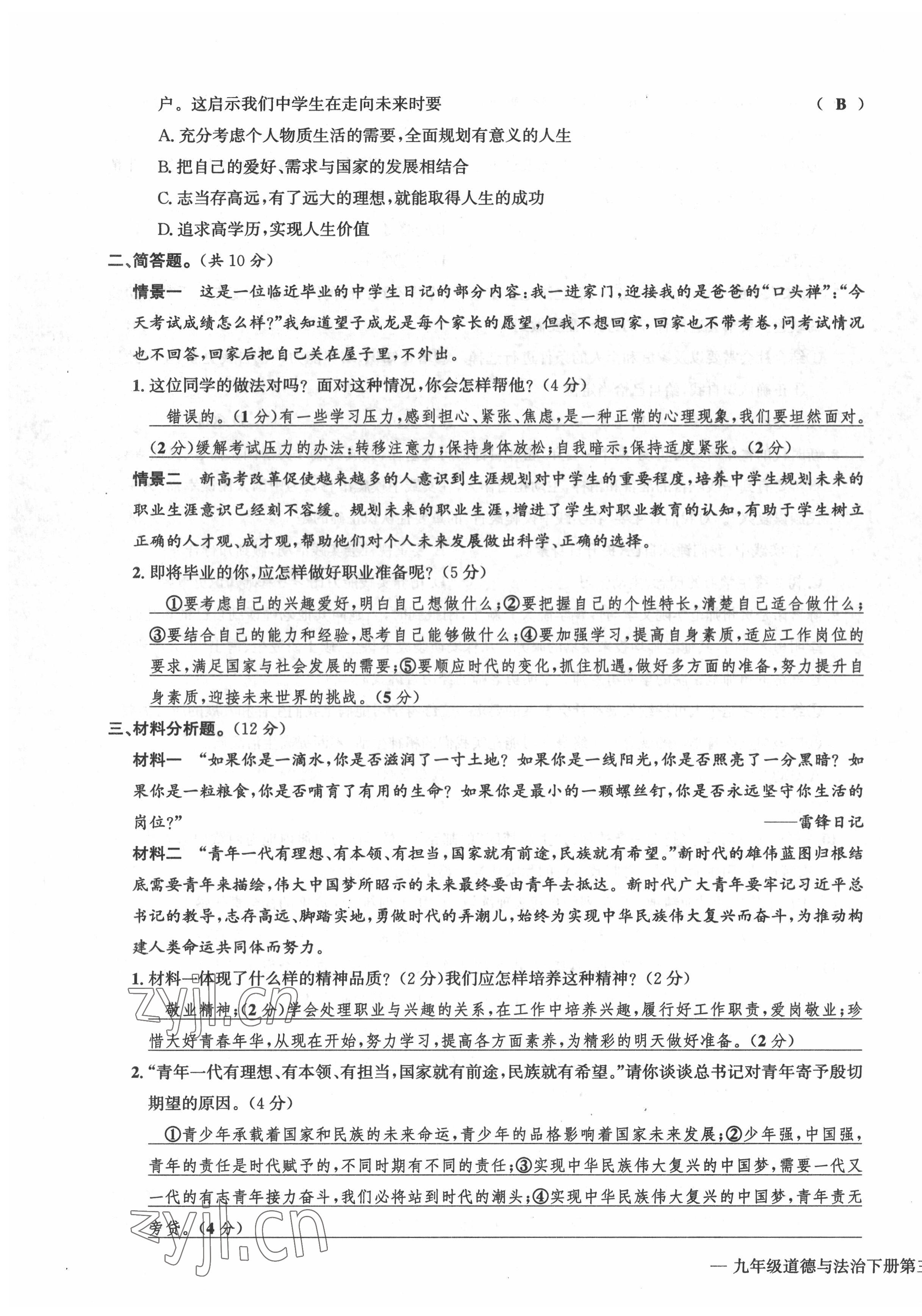 注:目前有些书本章节名称可能整理的还不是很完善,但都是按照顺序排列的,请同学们按照顺序仔细查找。练习册 2022年学业评价测评卷九年级道德与法治全一册人教版 答案主要是用来给同学们做完题方便对答案用的,请勿直接抄袭。