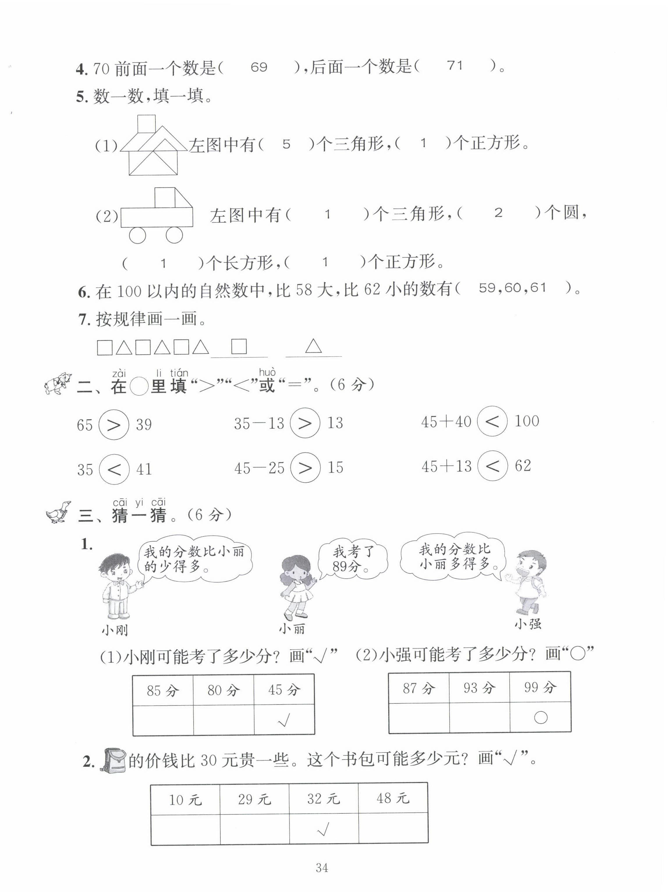 注:目前有些书本章节名称可能整理的还不是很完善,但都是按照顺序排列的,请同学们按照顺序仔细查找。练习册 2022年创新名校秘题一年级数学下册西师大版 答案主要是用来给同学们做完题方便对答案用的,请勿直接抄袭。