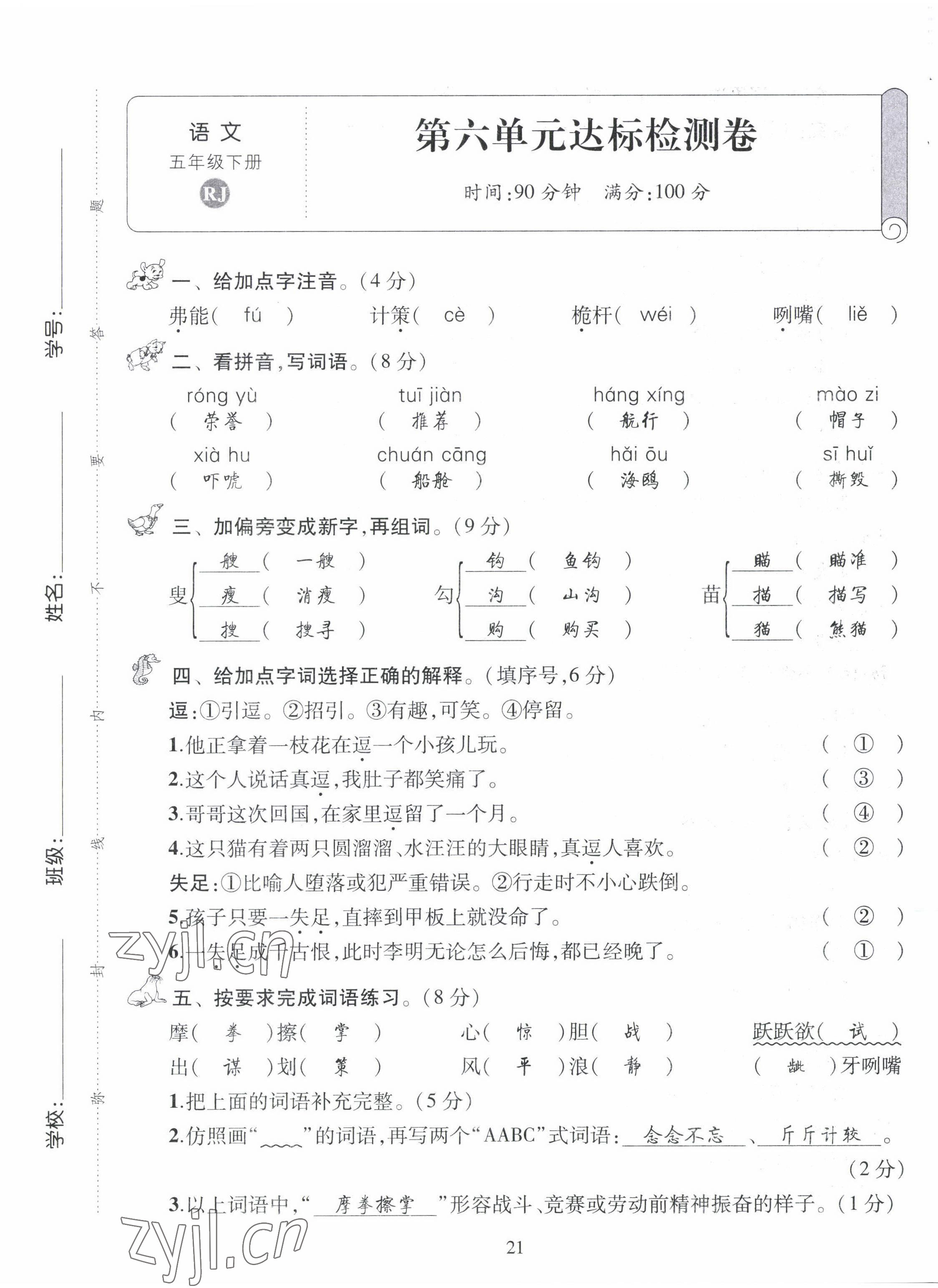 2022年创新名校秘题五年级语文下册人教版
