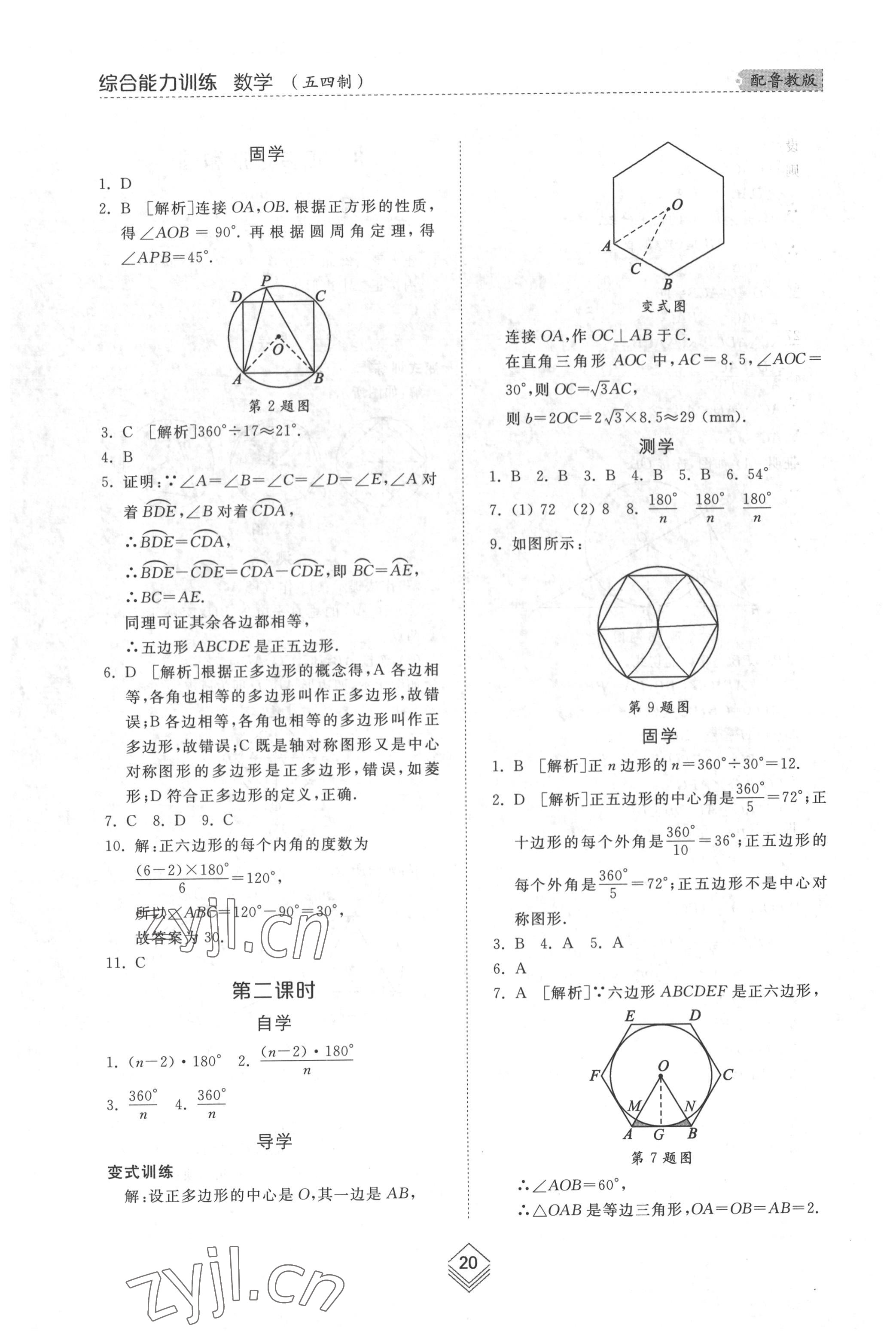 2022年综合能力训练九年级数学全一册鲁教版54制