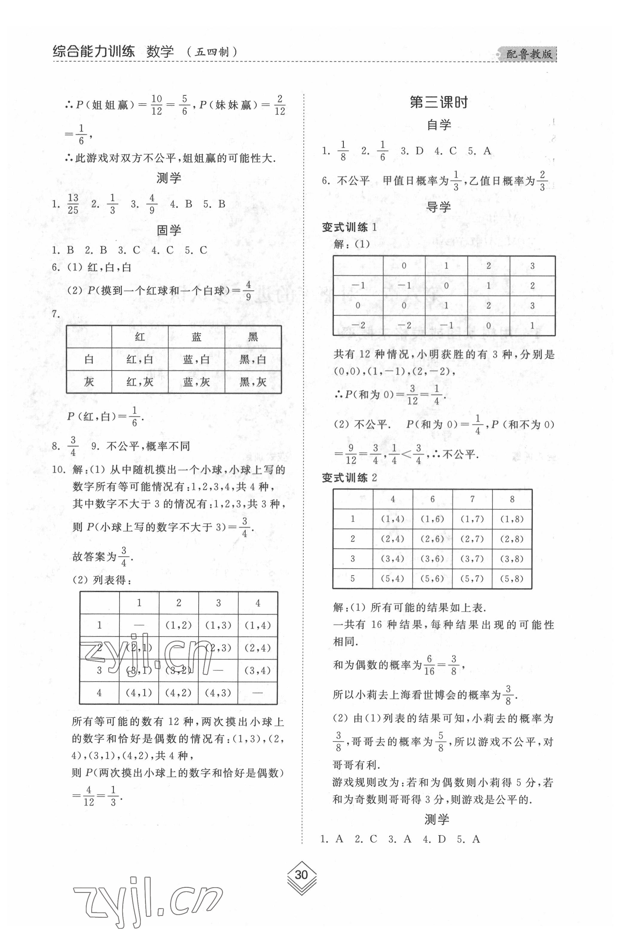 2022年综合能力训练九年级数学全一册鲁教版54制